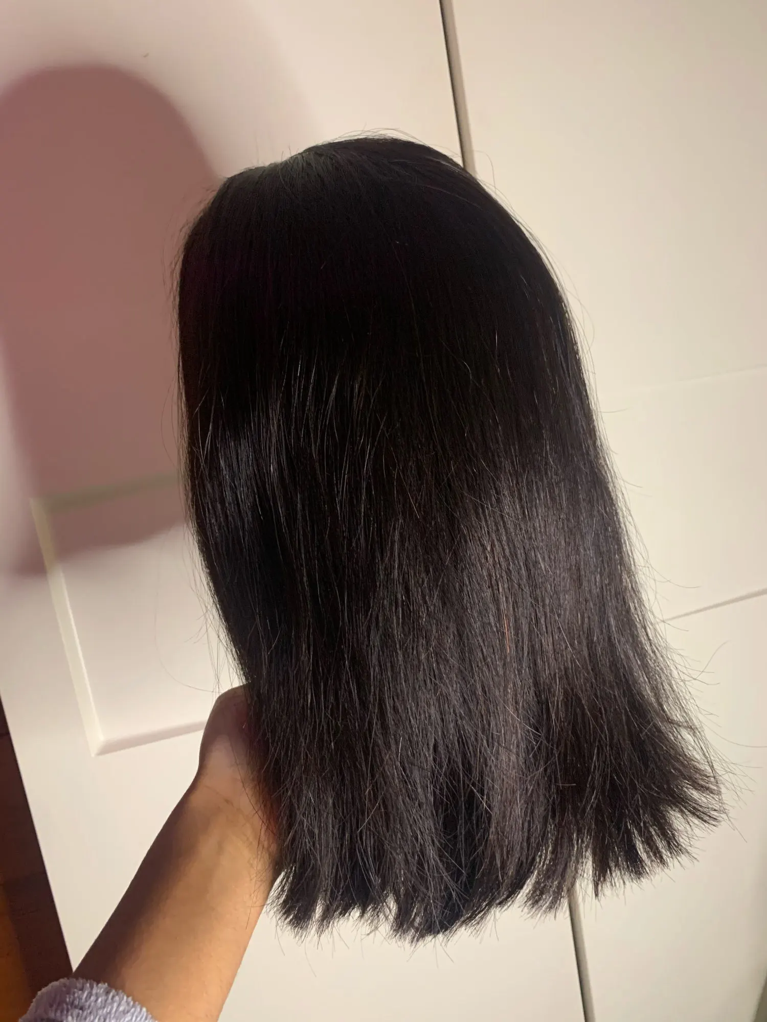 It came really fast! I ordered it on Friday and received it on Tuesday. The hair is really straight and looks really natural. I got a 10 in and I haven’t straightened or anything but for the wig to come out the package like this, is really good. It’s not stiff, like as soon as you step outdoor it’s going to blow. I literally took a step and my hair was moving. If you’re looking for a bob for a really good price, get this bob. Like this bob does what a bob should do. This bob is bobbing. However, I recommend getting a 12 in because it’s kind of thin towards the end, especially if you’re going to cut it shorter.