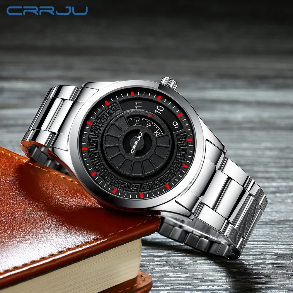 Часы CRRJU Мужские кварцевые деловые, креативные водонепроницаемые брендовые люксовые Спортивные Повседневные, из нержавеющей стали