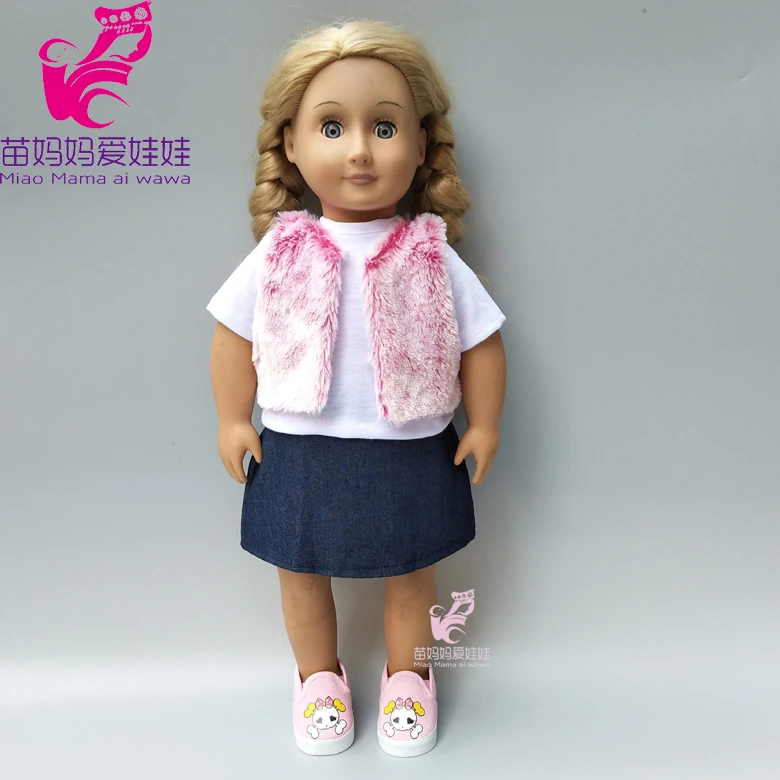 Одежда для кукол 43 см, пальто, меховой жилет, рубашка, джинсовое п...
