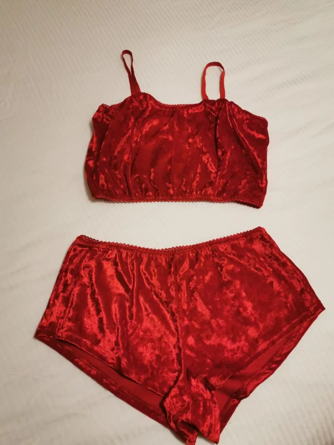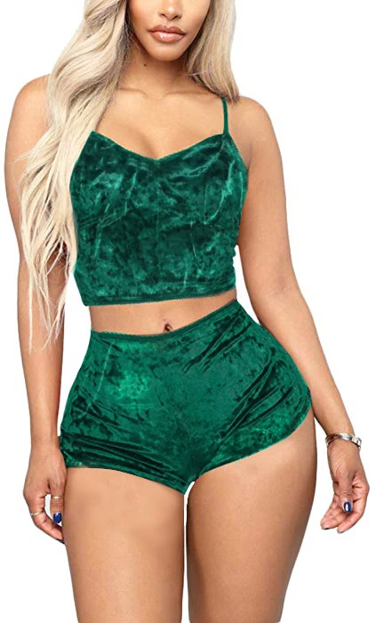 Комплект пижамный Женский, бархатный, на тонких бретельках, 2 шт.