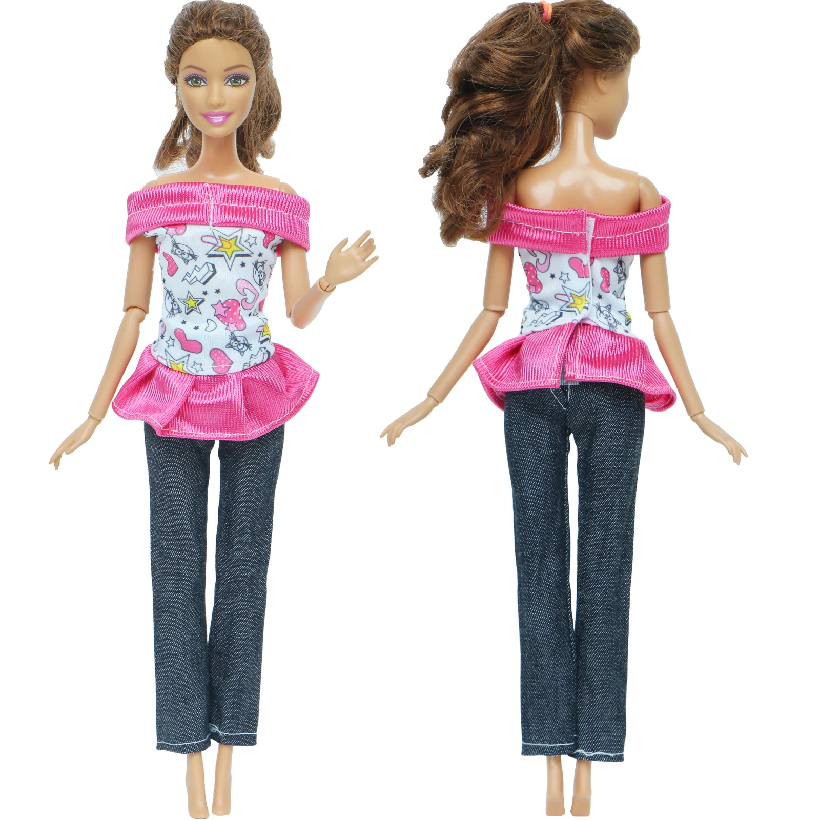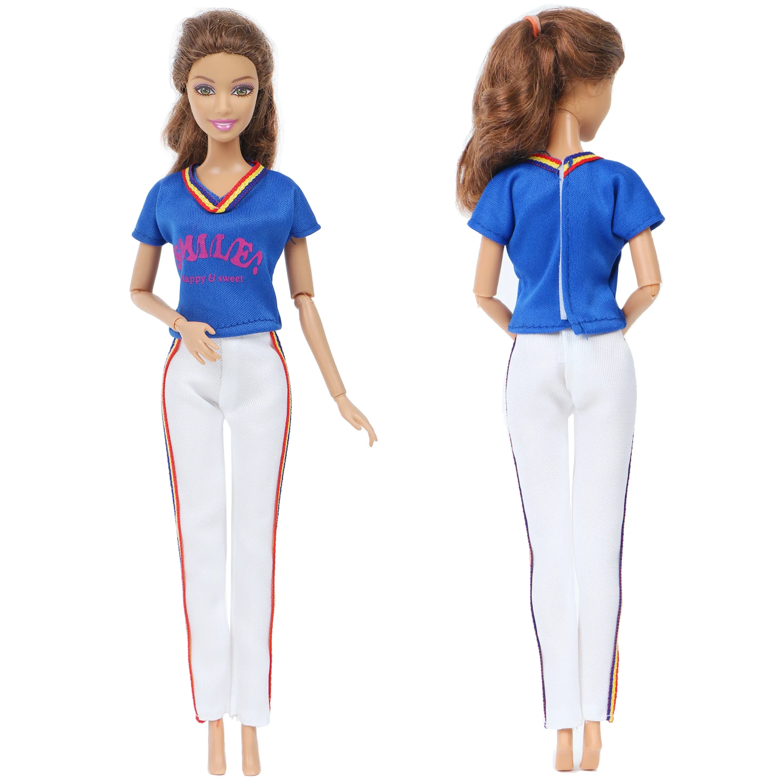 1 комплект, модный наряд для кукол, повседневная одежда, Смешанная стильная блузка, футболка, брюки, спортивный костюм, аксессуары, Одежда для куклы Барби