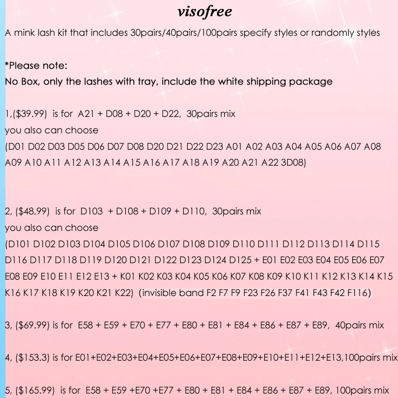 Visofree 3040100 пар 3D норковые ресницы с лотком без коробки ручной работы полные полосы ресницы норковые Накладные ресницы макияж ресницы