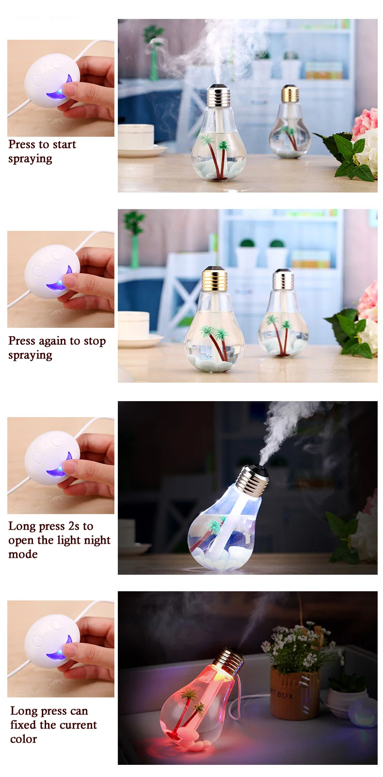 Увлажнитель воздуха ультразвуковой с лампочсветильник, 400 мл, USB