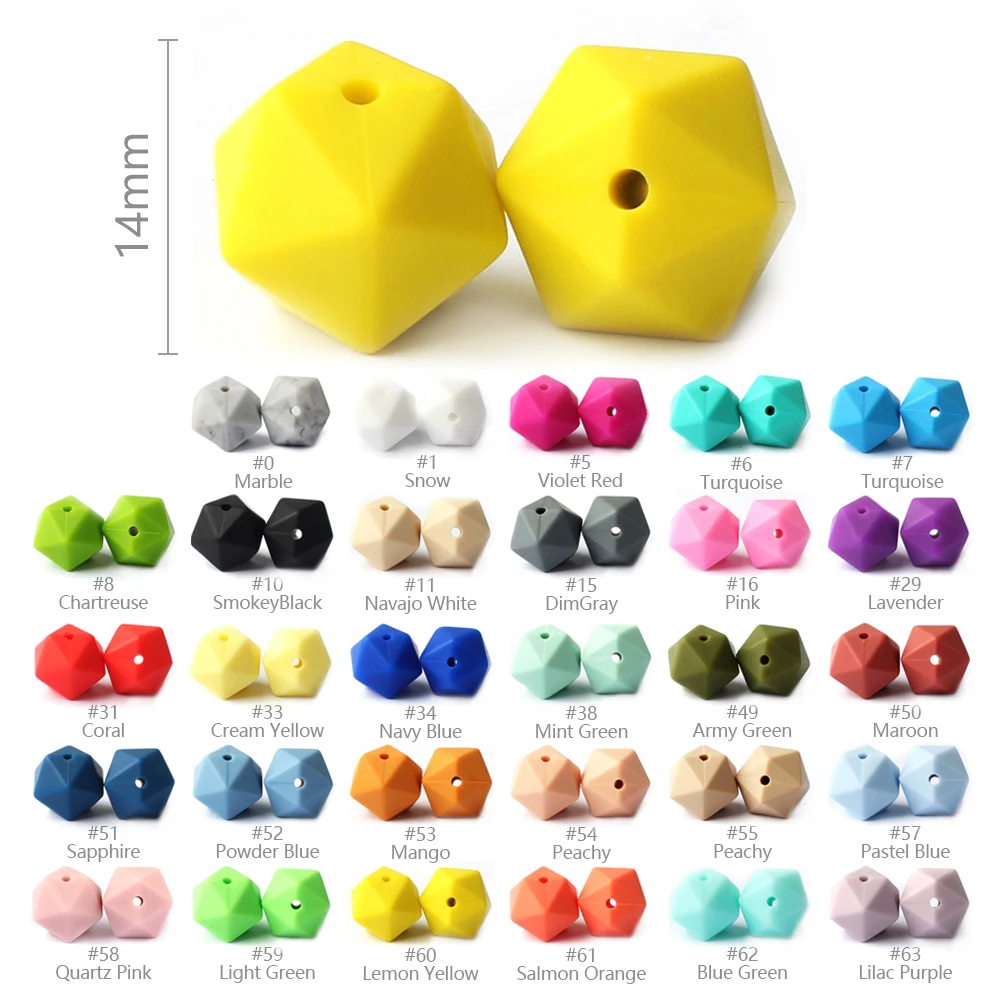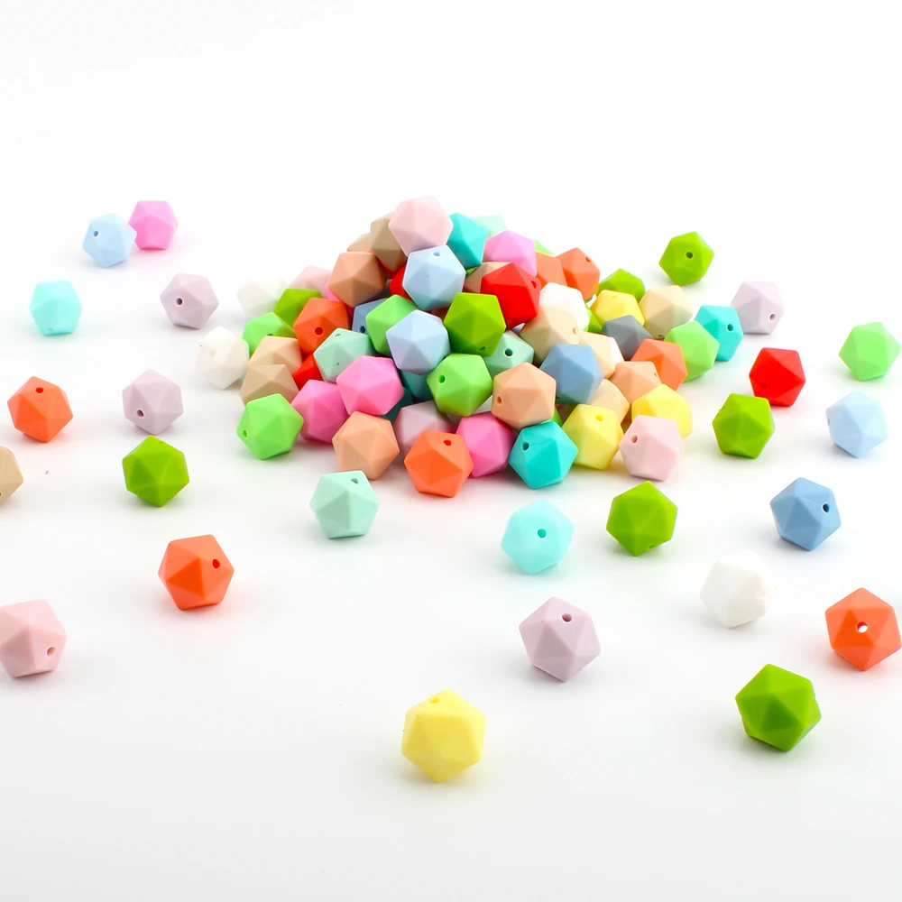 10 шт., шестигранные силиконовые бусины для прорезывания зубов, 14 мм