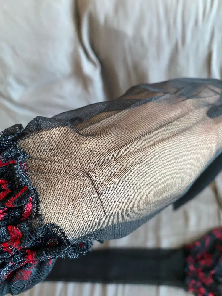 Хорошее качество, сделанно аккуратно, дополнительная резинка под гружевами, силикон и шнуровка сзади не позволят им сползти, подятжки не нужны, выглядят сексуально. Но есть одно но, если у вас длинные ноги или ваш рост больше 180 см, то они будут коротковаты. Если у вас полные ляжки, то резинка под кружвами будет давить и выделятся. Стройняшкам и для фигур в пределах средних, сидеть будет отлично.