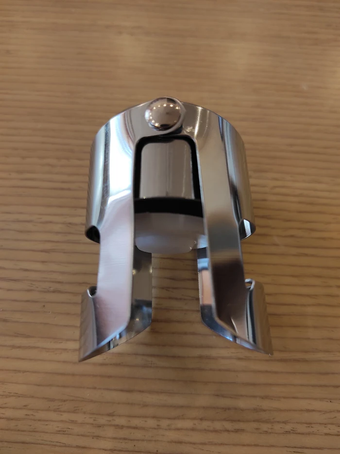 Хорошее качество, быстрая доставка. Раньше мы пользовались пробками-затычками из силикона, ими можно закрыть бутылку вполне надёжно. Но когда у тебя есть такая пробка из металла - смотрится намного солиднее силиконовой затычки. На бутылке сидит плотно, и вообще это хороший аксессуар для кухни: приходят к вам гости, открываете шампанское, а после этого вместо того, чтобы с ними допить, демонстративно закупориваете бутылку такой пробкой и ставите в холодильник. Это лучший способ показать - кто в доме хозяин, а тот, кто хозяин - того и шампанское. Конечно шутка, но в любом случае вещь полезная, спасибо продавцу.