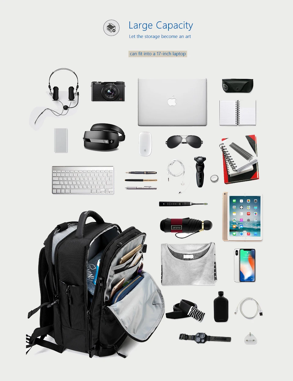 Рюкзак OZUKO мужской, для ноутбука 15 дюймов, 17 дюймов, водоотталкивающий, многофункциональный, с USB-портом для зарядки