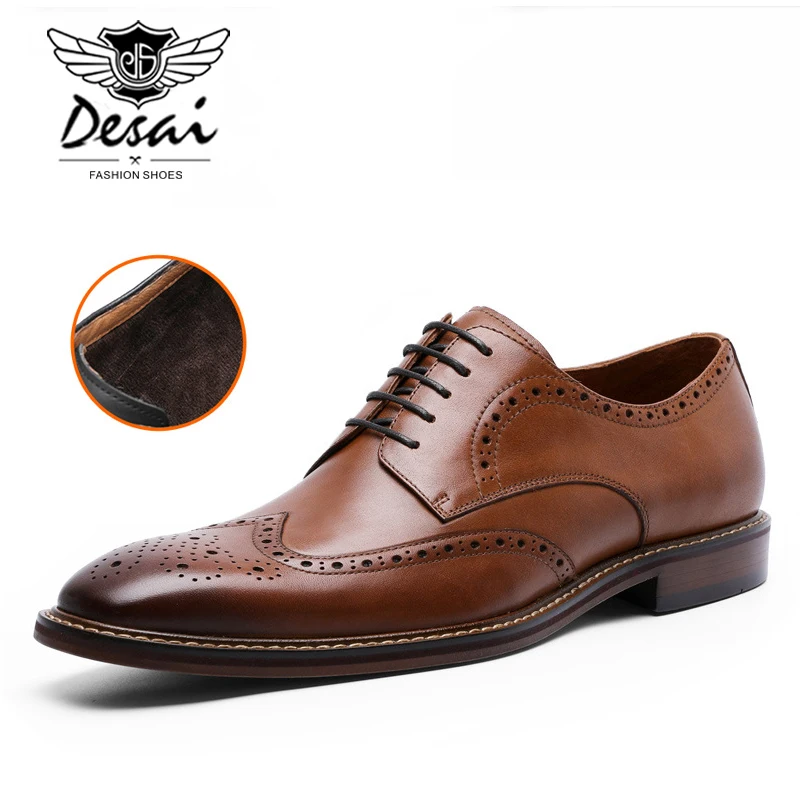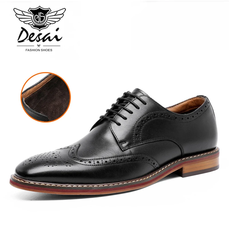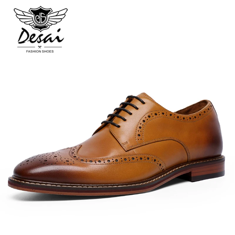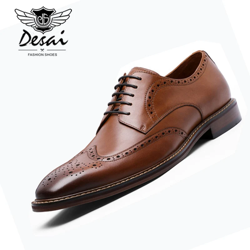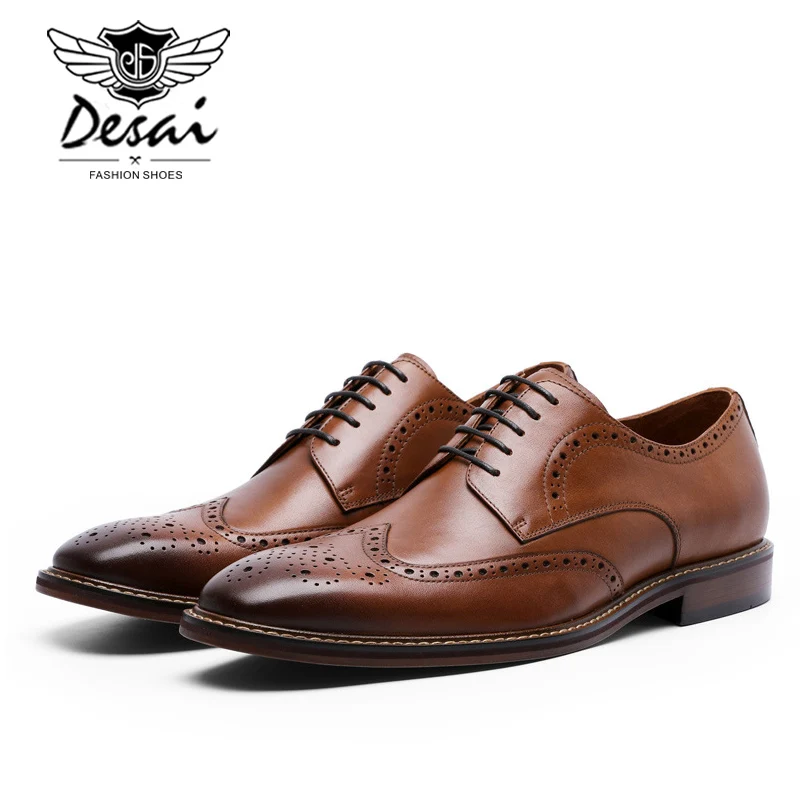 DESAIНовое поступление; Мужские деловые туфли из натуральной кожи; Мужские туфли в стиле ретро; Формальные туфли с резным узором; DSA002