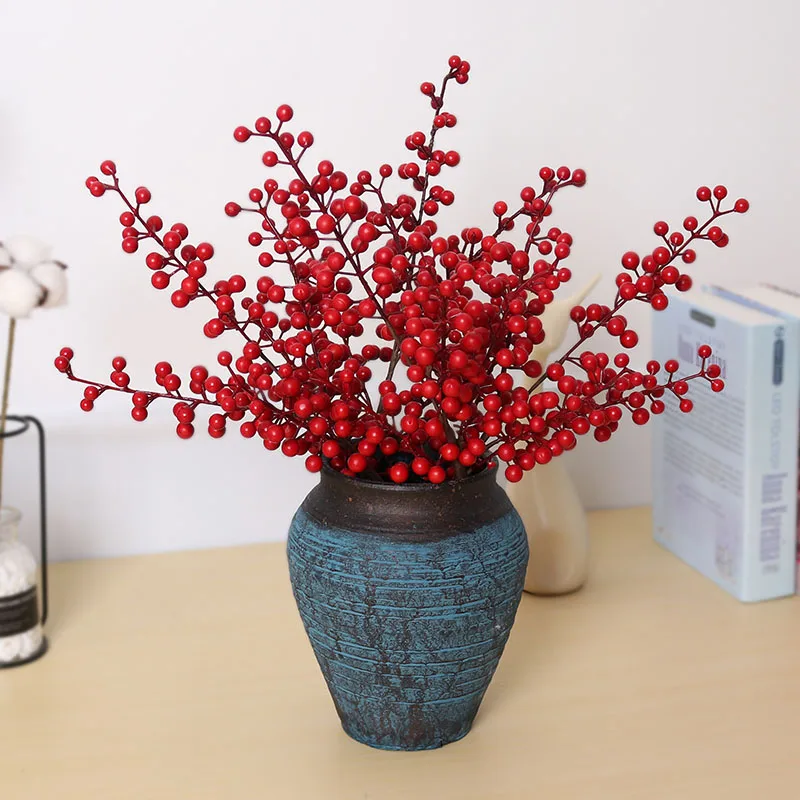 Ветка из искусственных ягод, пластиковые искусственные цветы, листья, декоративные ягоды, красные ягоды, растение для новогоднего и Рождественского украшения