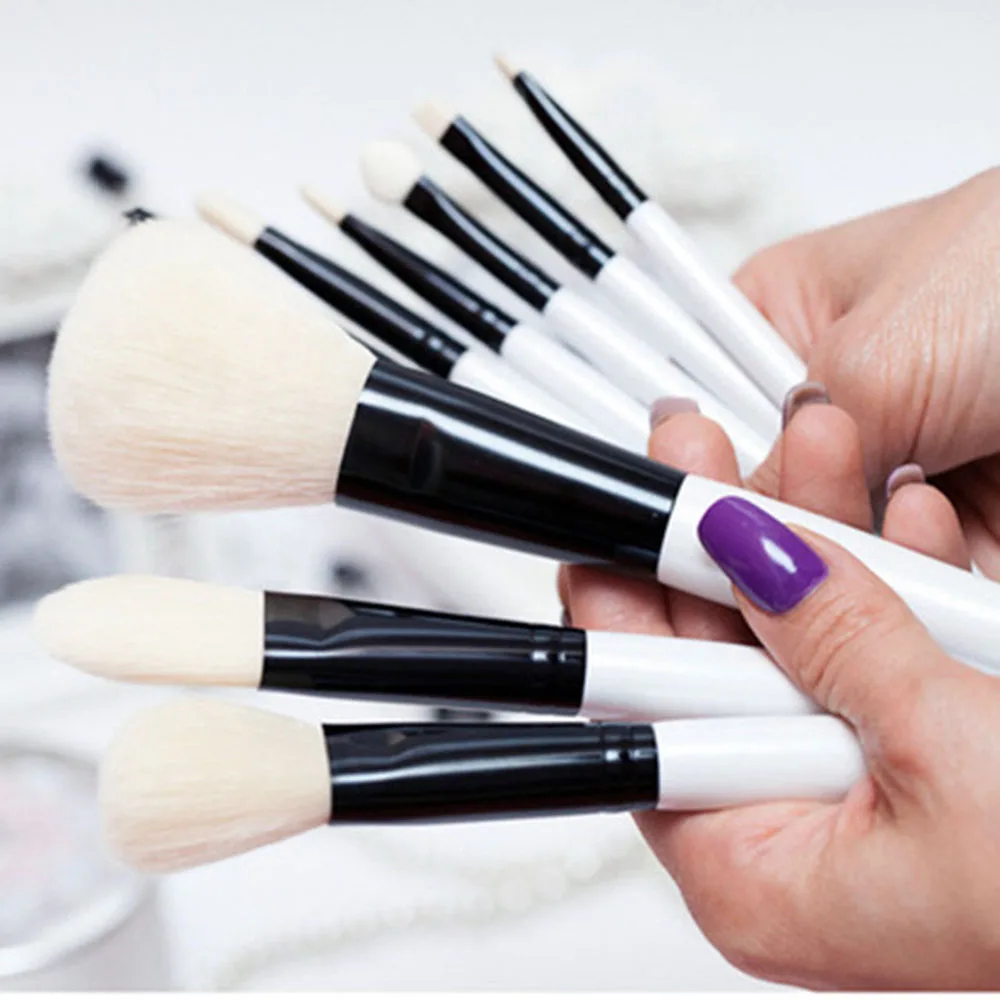 V702 # короткая ручка 7 шт набор кистей включая:1 кисть для пудры, 1 кисть для основы, 1 кисть для румян, 1 кисть для теней, 1 кисть для консилера, 1 угловая кисть для бровей, 1 кисть для губ.