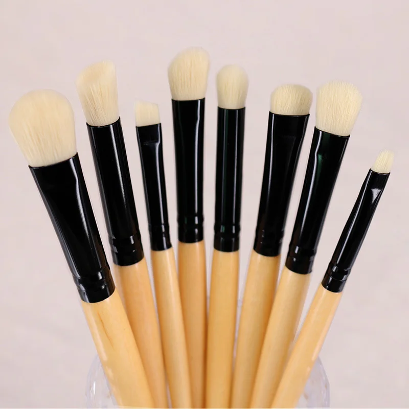 1076 #8 шт натуральные кисти для глаз набор включает:1 большая кисть для теней,1 маленькая кисть для теней, 1 угловая кисть для теней, 1 контур теней, 1 кисть для смешивания теней, 1 кисть для размазывания, 1 Гелевая Кисть для подводки глаз, 1 угловая кисть для бровей.