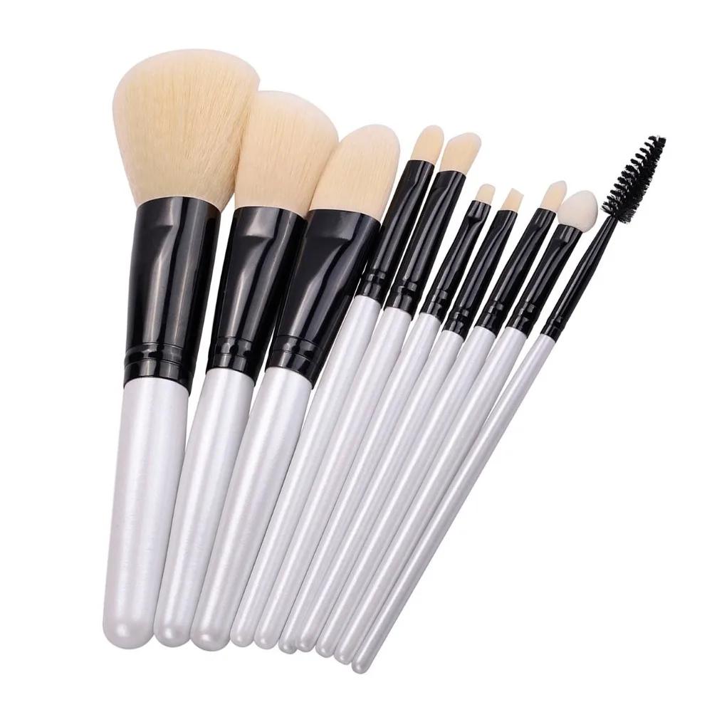 1052 #10 шт белые щетки в комплекте:1 кисть для пудры, 1 кисть для основы, 1 кисть для румян, 1 кисть для теней, 1 кисть для консилера, 1 угловая кисть для бровей, 1 Гелевая Кисть для подводки глаз, 1 кисть для губ, 1 аппликатор для губки, 1 кисть для ресниц.