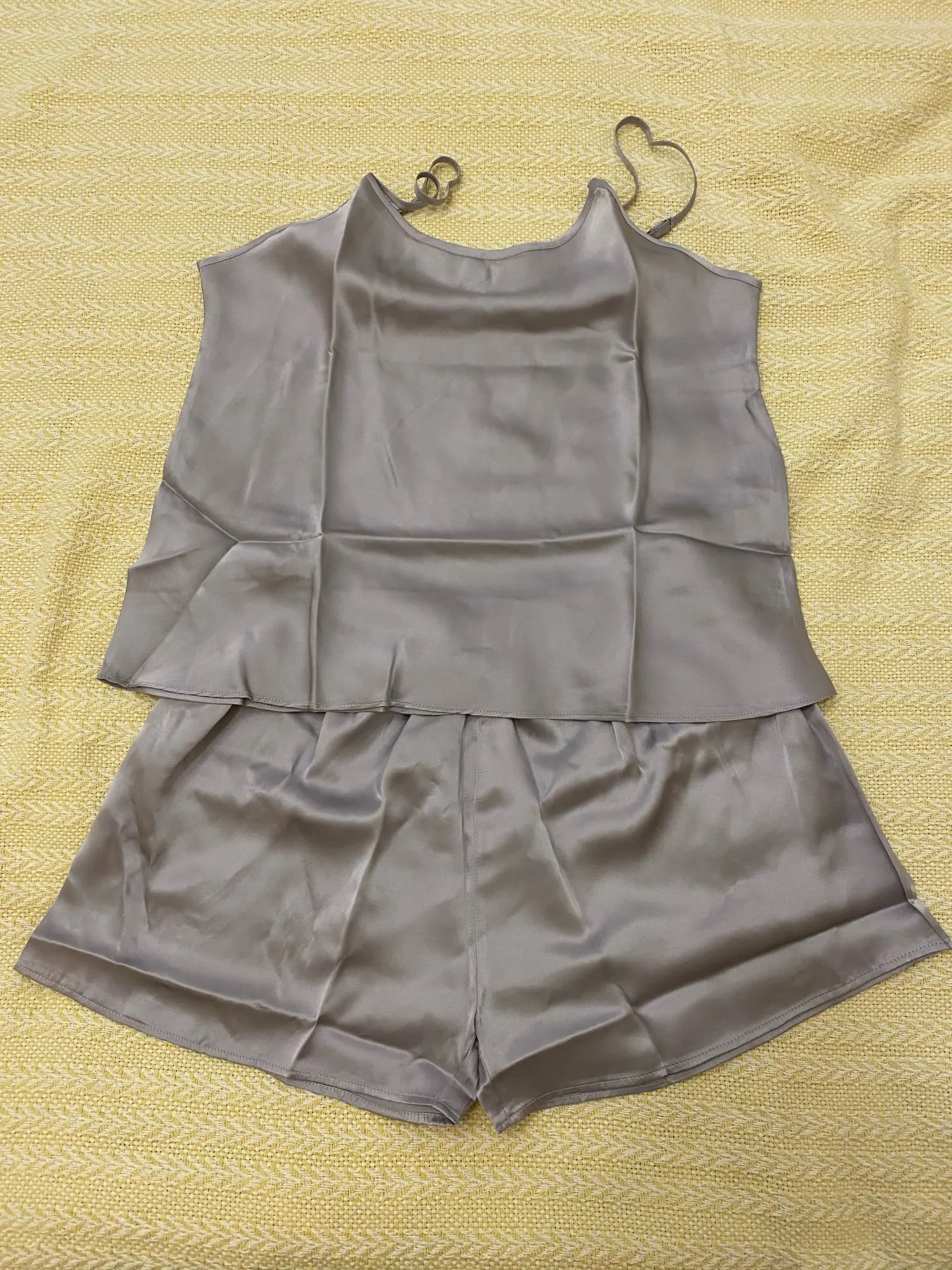 Очень красивая пижама! Приятная, действительно шёлк. Сравнила с шелковой наволочкой, которую покупала в России в специализированном магазине. Очень красивый цвет- жемчужно серый. На параметры 95-73-96, рост 175см, взяла XXL, идеально села. Пижамку однозначно рекомендую!