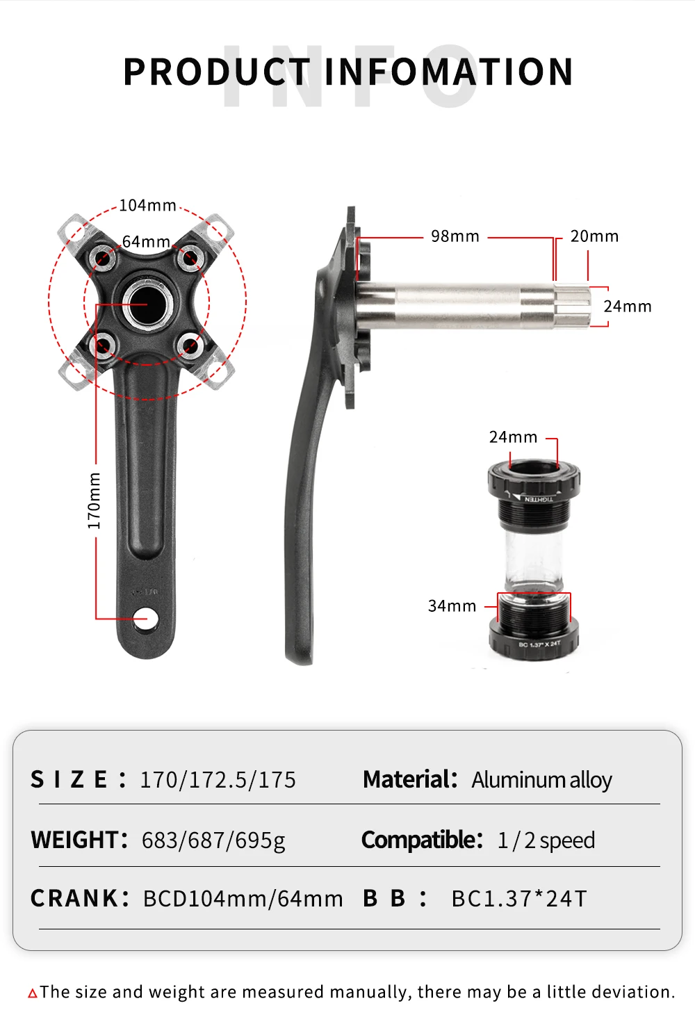 104BCD MTB велосипед диаметра окружности болтов (Алюминий сплав с нижней поверхностью шатун со звездочками для велосипеда рукоятка MTB велосипед аксессуары 170 мм 172,5 мм 175 мм