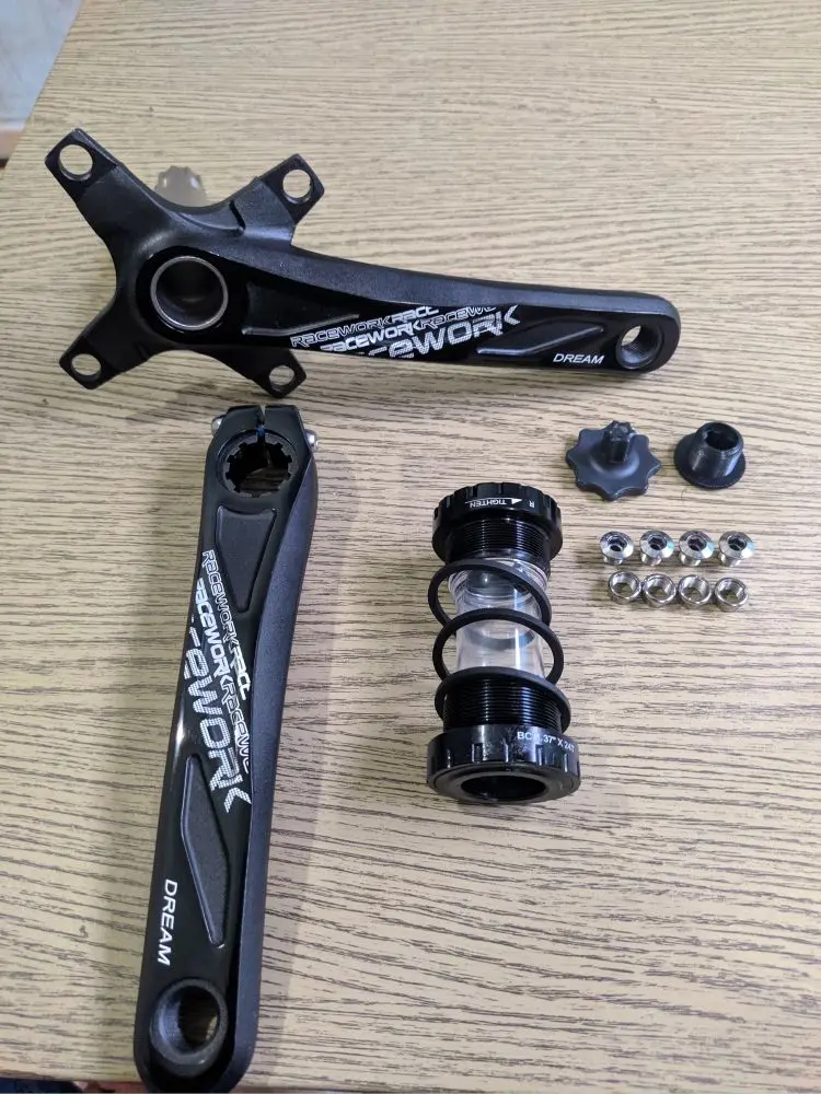 искала замену чугунным шатунам на байке - гряземесе по критериям вес/цена. этот вариант понравился настолько, что решили заказать два комплекта, заодно ещё на один велосипед для зимнего безумия. упаковано очень хорошо, обработка 3из5 - много заусенцев, чутка надо доработать. Почему-то каретки разные. обе дешман, одна походу с пластиковыми чашками(чёрная втулка), один подшипник изначально с усилием работает. вторая каретка выглядит поживее.
