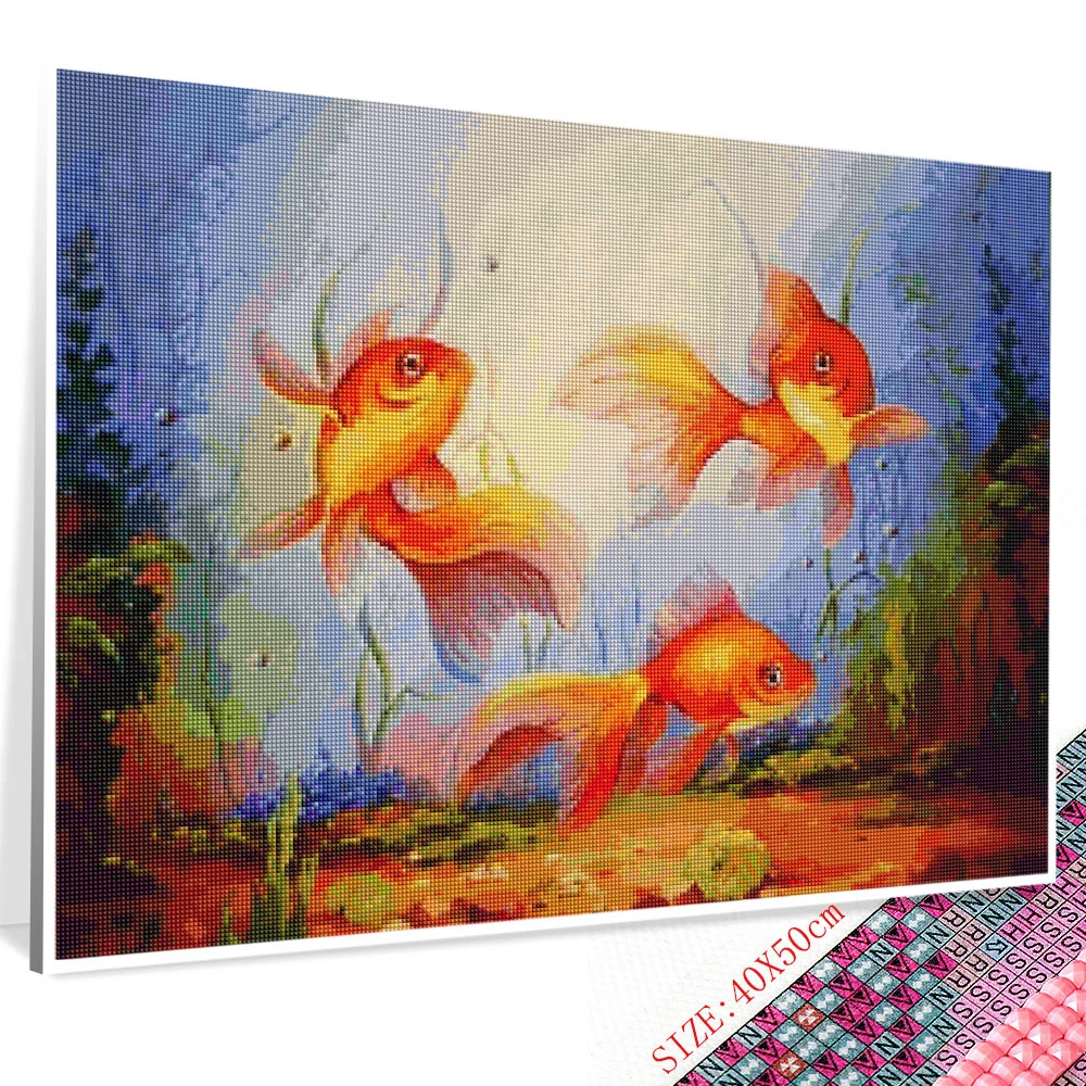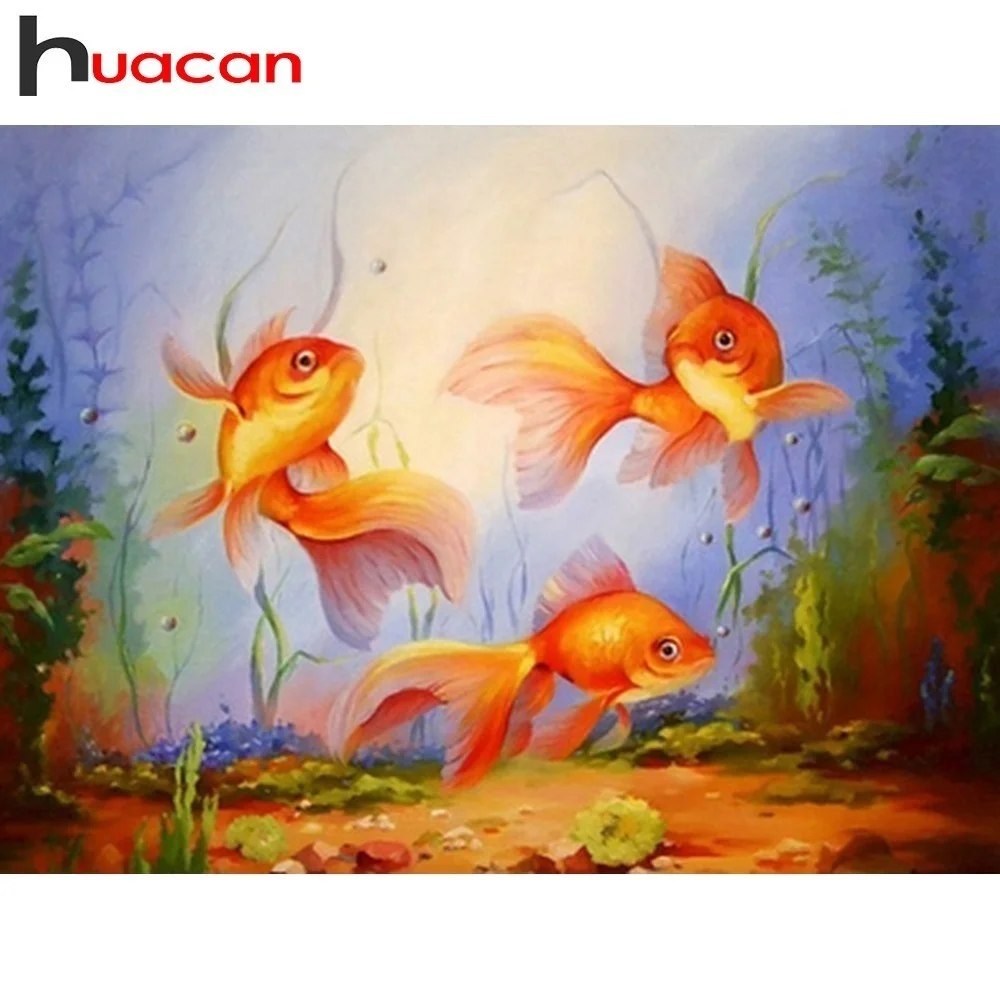 Алмазная живопись Huacan сделай сам с рыбками, полнаякруглая вышивка, Золотая рыбка, вышивка крестиком, стразы Бриллиантовая мозаичная фигурка животного