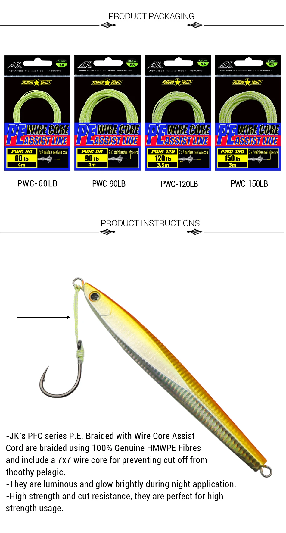 Леска рыболовная плетеная JK, зеленая светящаяся леска из нержавеющей стали с сердечником 7*7, 90120150 фунтов, 8 нитей