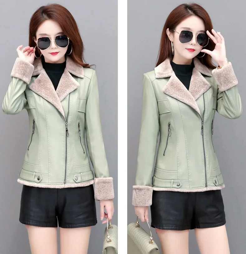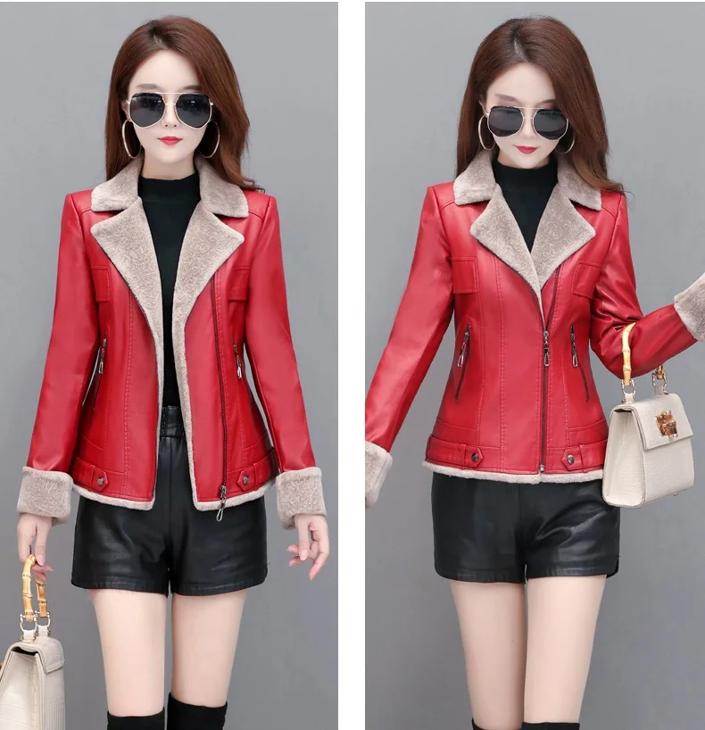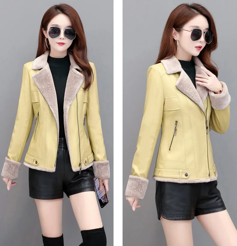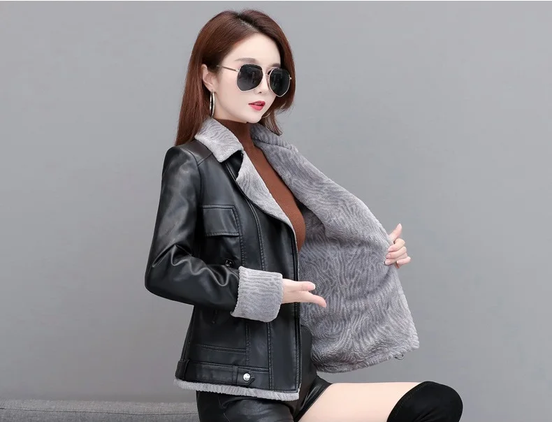 UHYTGF модная кожаная куртка для женщин Роскошные черные меховые плюс бархатные теплые короткие топы зимние пальто женское манто Manteau Femme 934