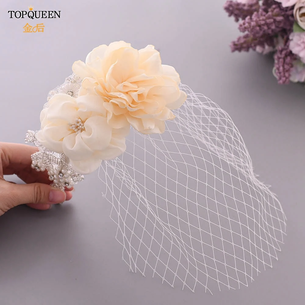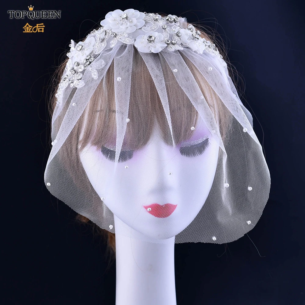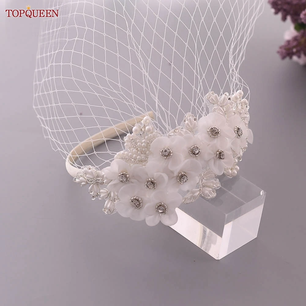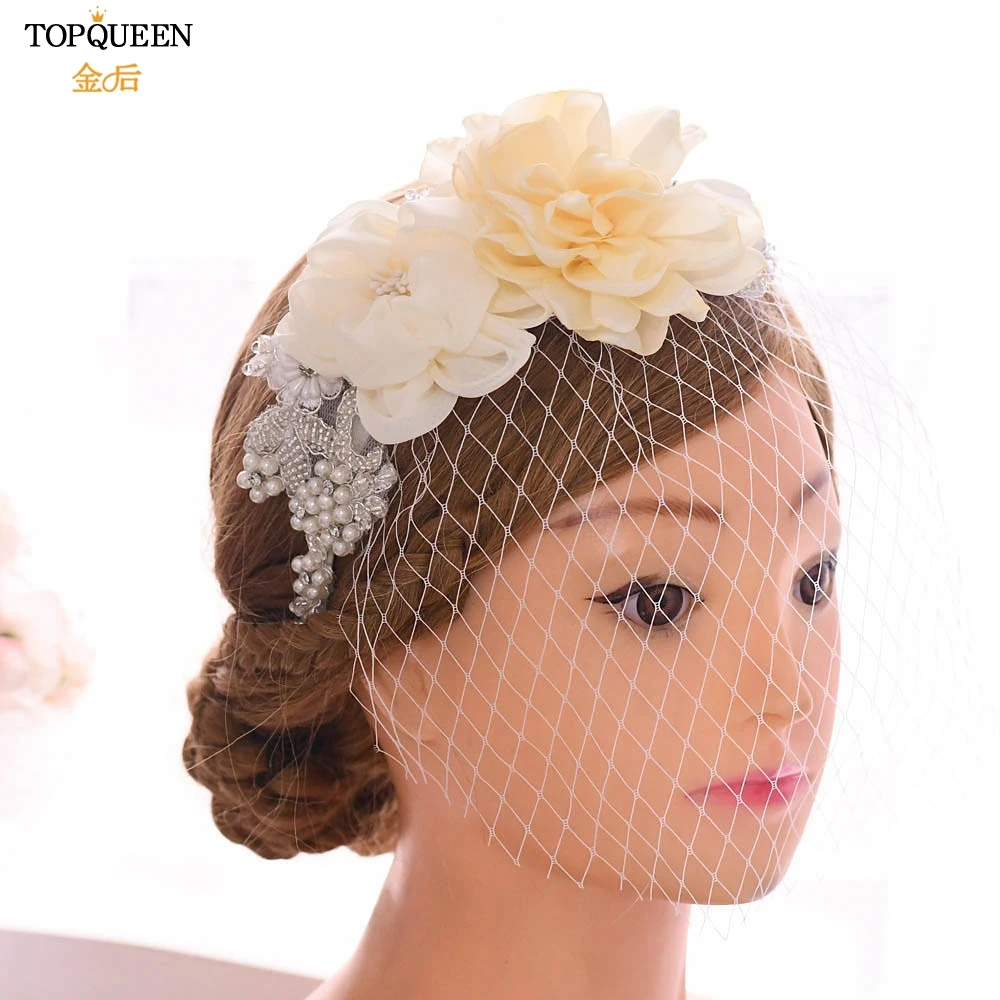 S172-WS Вуалетка для волос TOPQUEEN, Вуалетка для волос в виде птичьей клетки, свадебный кружевной головной убор с цветами, Свадебная вуалетка для волос