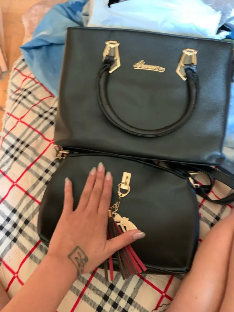 Сумка пришла через 2 недели. Отправили её быстро. Сумка хорошо упакована в пупырку и сверху ещё почтовый пакет. Внутри большой сумки была маленькая. Также было 2 пакета, наполненных воздухом внутри сумки, из-за чего она не помялась. За упаковку отдельное спасибо продавцу. Упаковано качественно. Трек номер отслеживался. Сумки пришли без царапин, вмятин и всего такого. Выглядят красиво и презентабельно. Правда я думала сумки будут побольше. Они довольно просторные внутри. Материал внутри чем-то напоминает бумагу. Ручки у обоих сумок выглядят немного хлипко. Что-то тяжёлое, как мне кажется, в ней не понесешь. В целом сумкой довольна. Своих денег она стоит. Большое спасибо