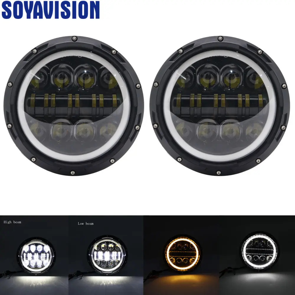 80 Вт 7 ''светодиодная фара сС белым янтарем DRL