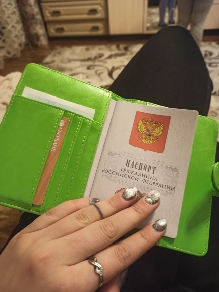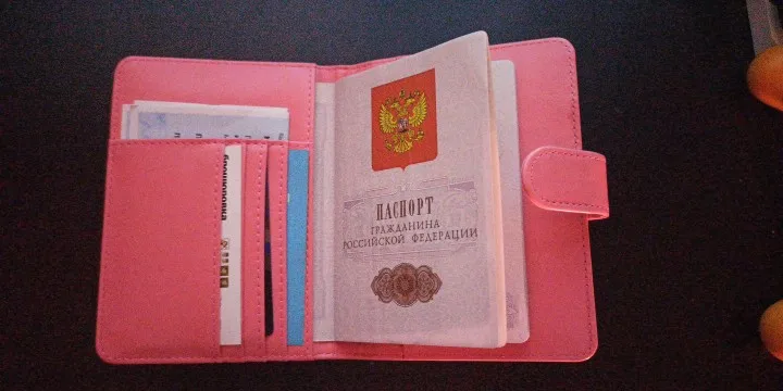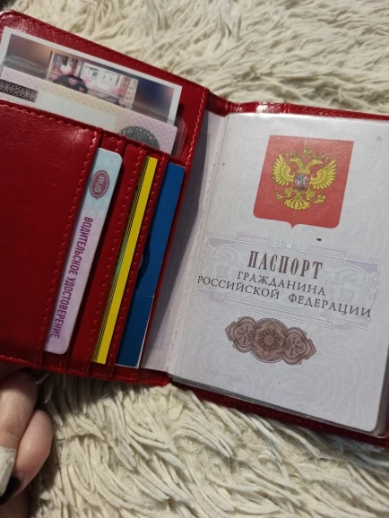 Товар был упакован в обычный пакет, пришёл с задержкой в пару дней. Но я заказывала себе так что готова была ждать. Всё очень круто. Паспорт влез как родной, карточки можно даже чуток утопить (чтобы их не было видно). Многие выставляют фото, что в верхний корман кладут СНИЛС. Я брала ради документов на машину Цвет на моём фото красный, но в живую ближе к бордовому (у продавца фото ближе к реальности). Нитки не торчат, запаха нету.