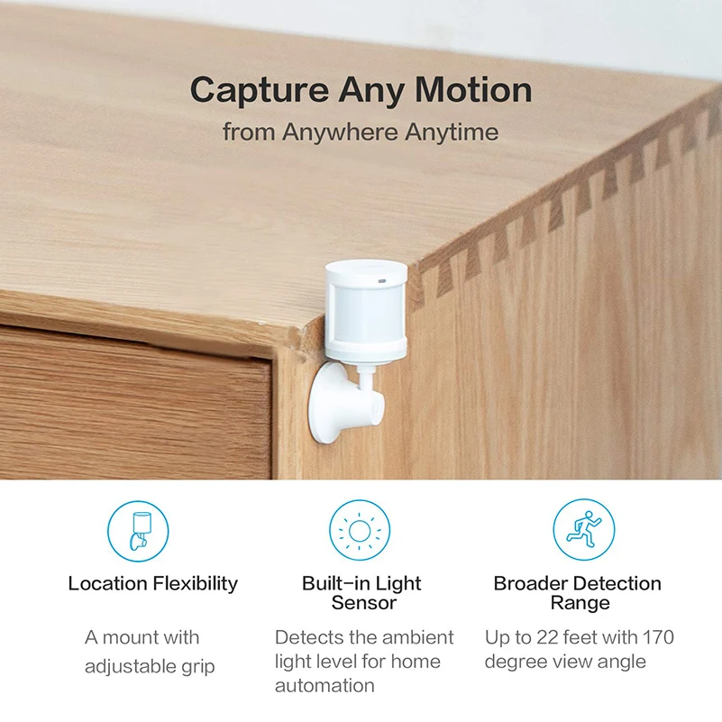 Приятно был удивлен, что этот датчик ещё и датчик освещенности, то есть можно назначить сценарий, как на движение, так и на освещение. К сожалению нельзя управлять уровнем освещения, но он сам хорошо понимает когда светло, когда темно.