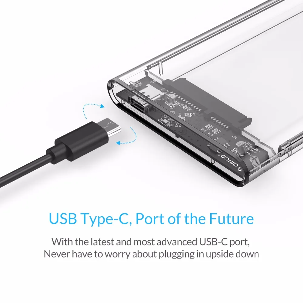 ORICO Type C 2,5 ''Прозрачный чехол для жесткого диска USB3.1 Gen2 10 Гбитс Корпус жесткого диска поддержка протокола UASP с кабелем Type-C