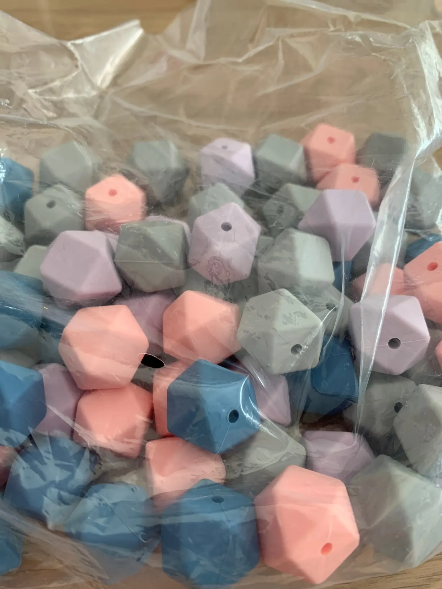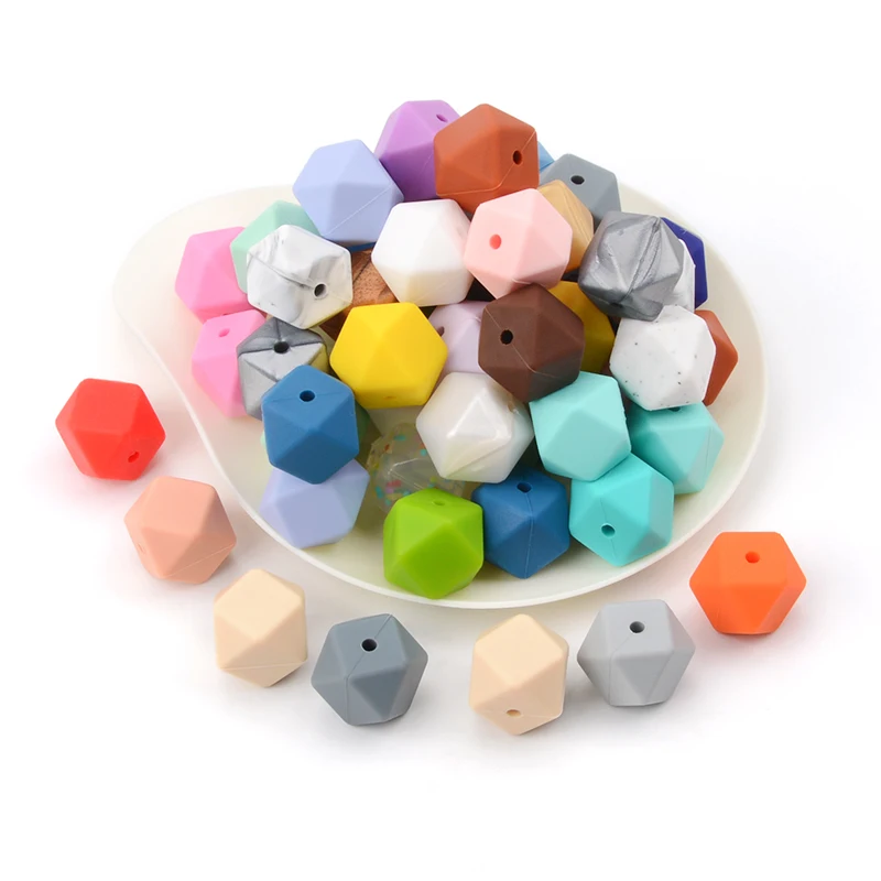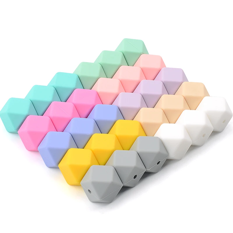 Шестигранные силиконовые бусины 15 шт.лот 17 мм, Детские Прорезыватели из пищевого силикона для прорезывания зубов, для изготовления ожерелий, жевательные бусины для прорезывания зубов, свободные