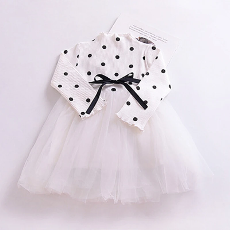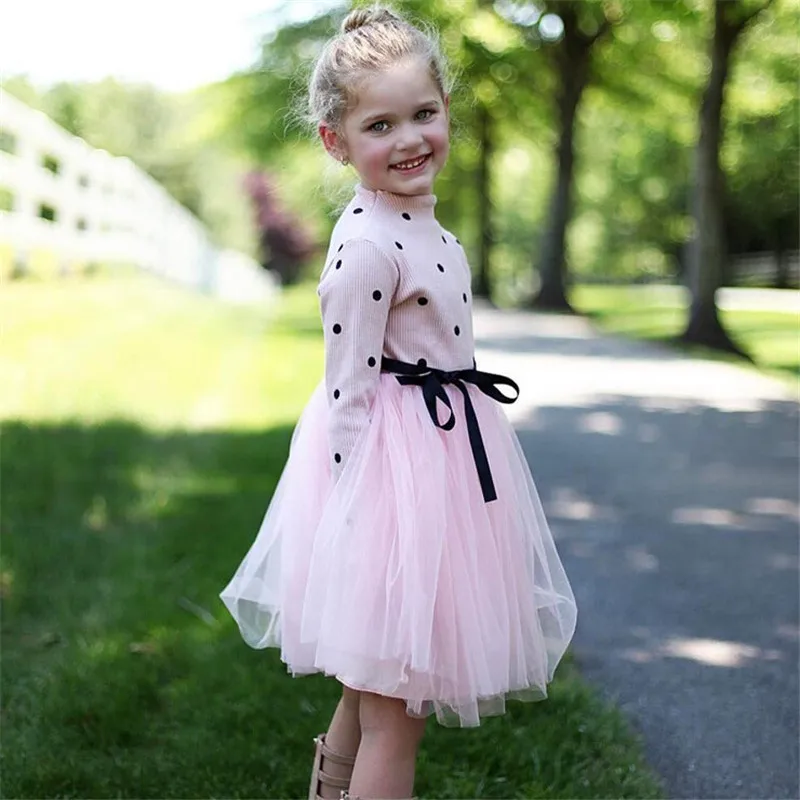 Платье-пачка для девочек, Тюлевое, с длинным рукавом, в горошек