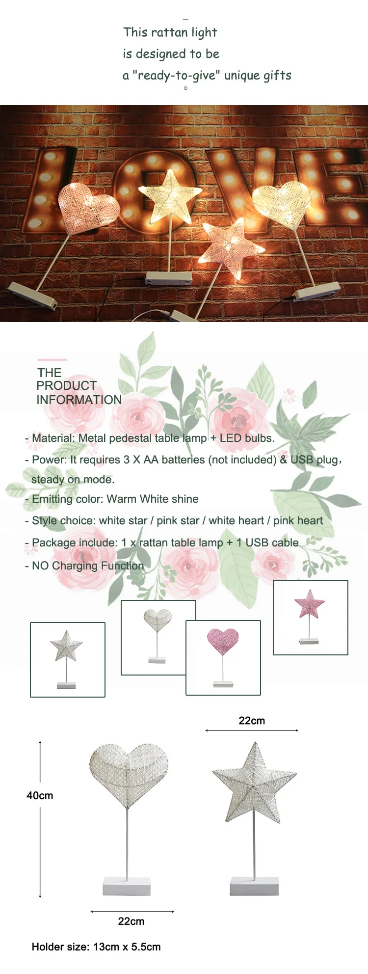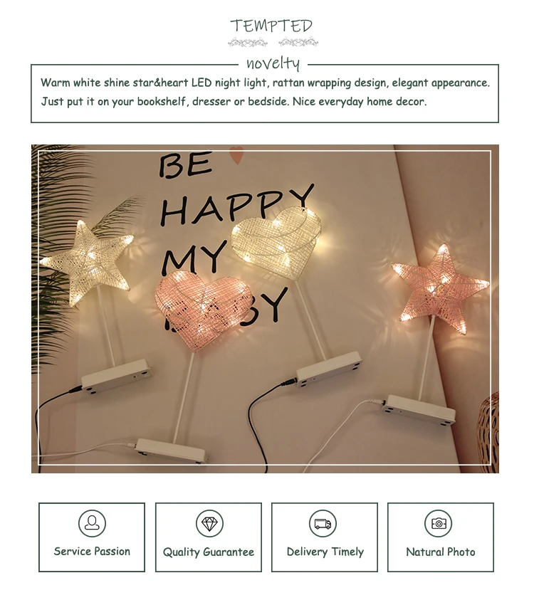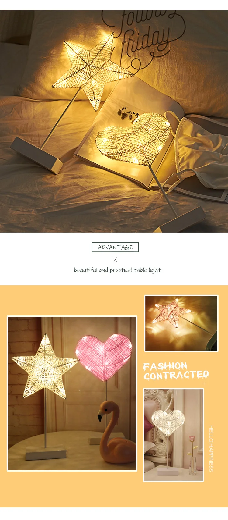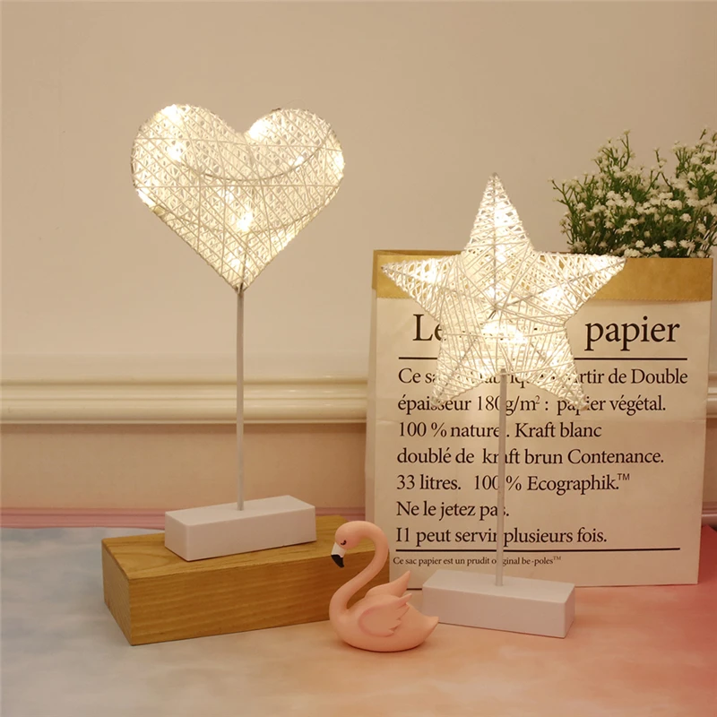 Ночсветильник Креативный светодиодный, в форме сердца, звезды, дерева, травы, ротанга, на батарейках