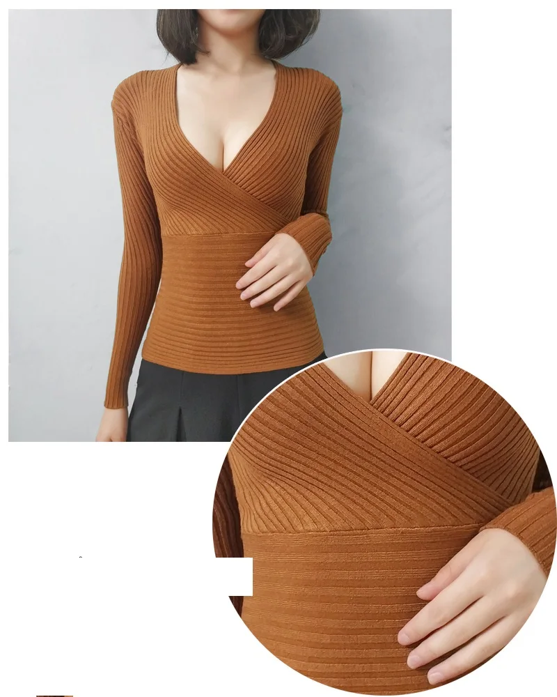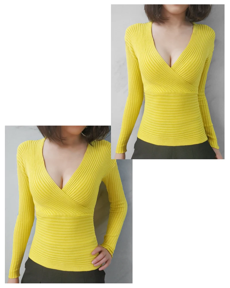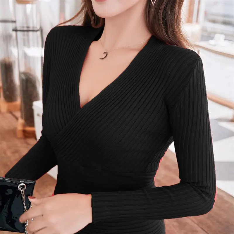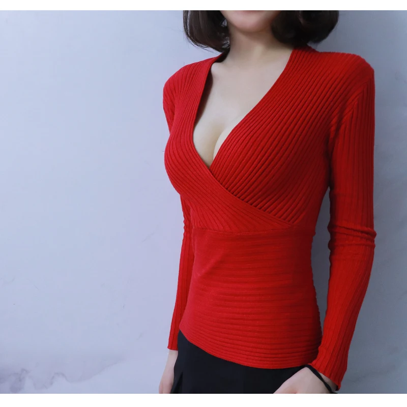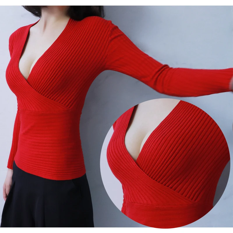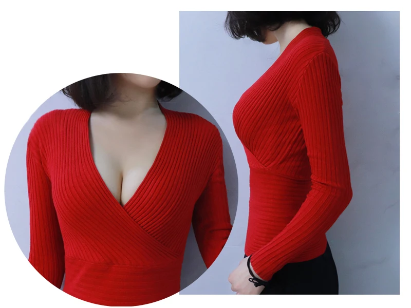TuangBiang весенние сексуальные женские свитера с V-образным вырезом 2022, Дамский однотонный высокоэластичный короткий свитер, женские узкие трикотажные красные джемперы