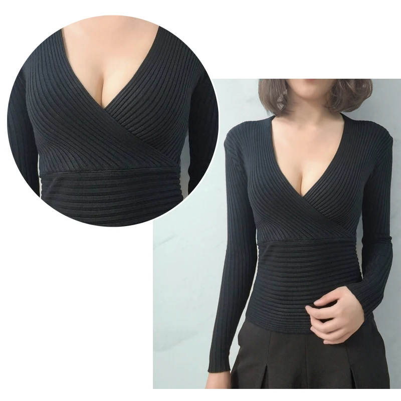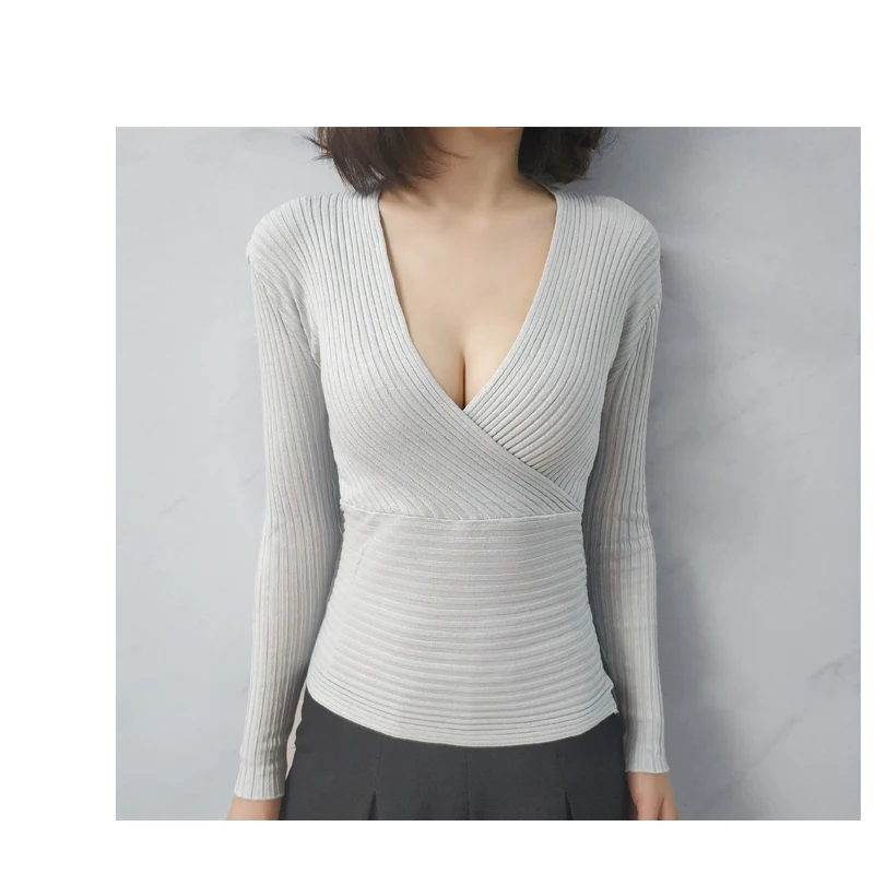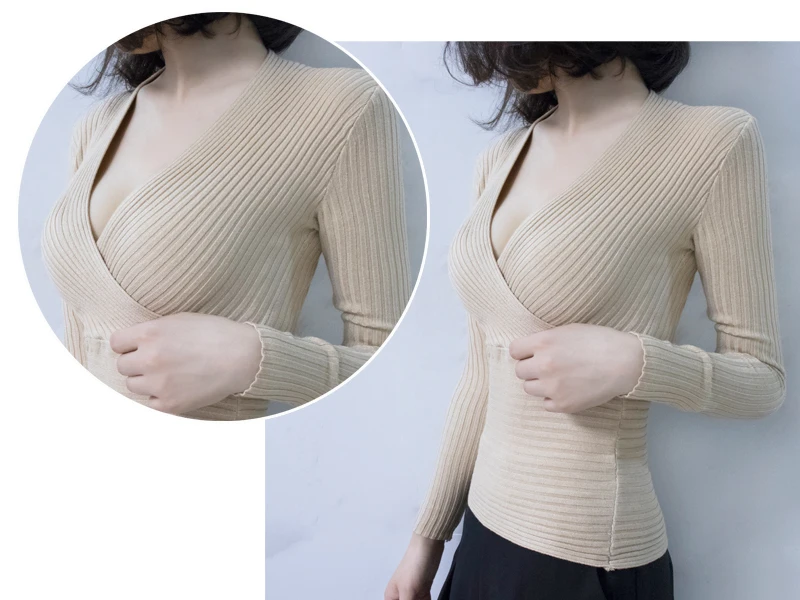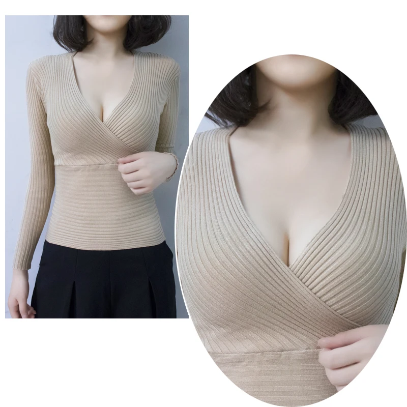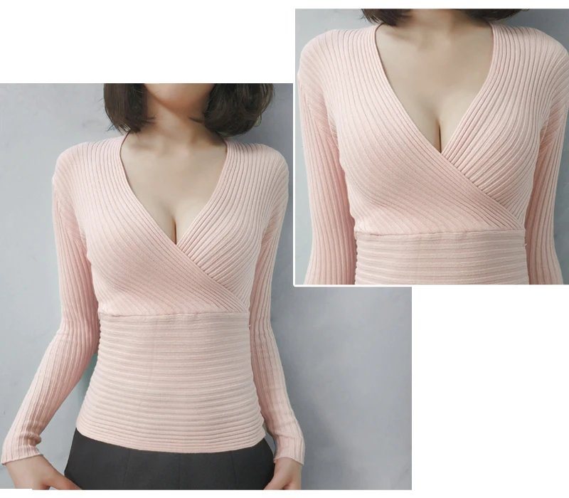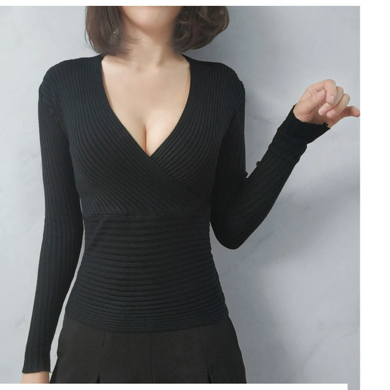 TuangBiang весенние сексуальные женские свитера с V-образным вырезом 2022, Дамский однотонный высокоэластичный короткий свитер, женские узкие трикотажные красные джемперы