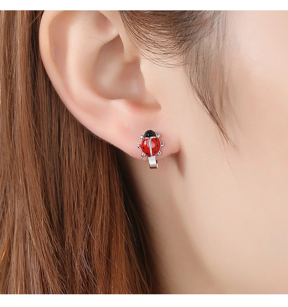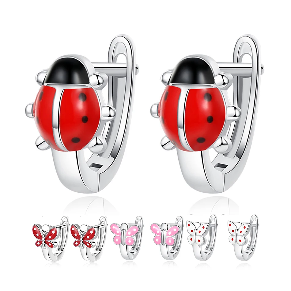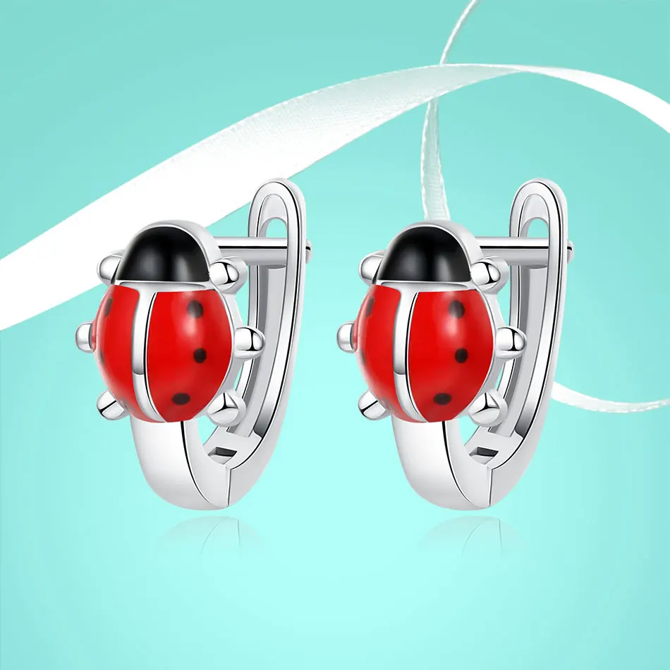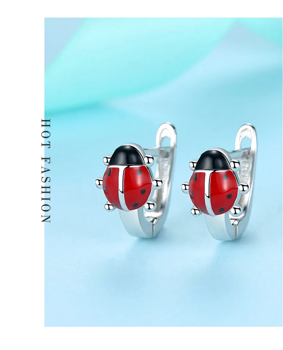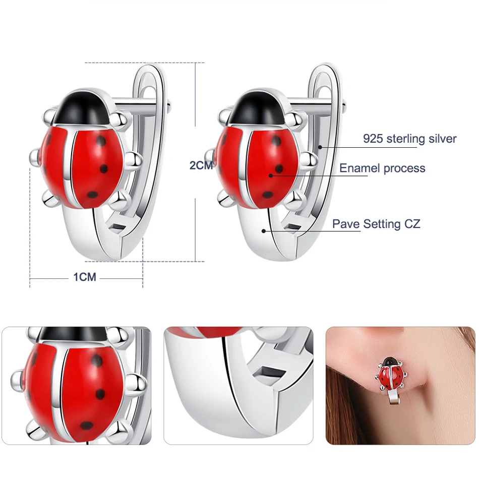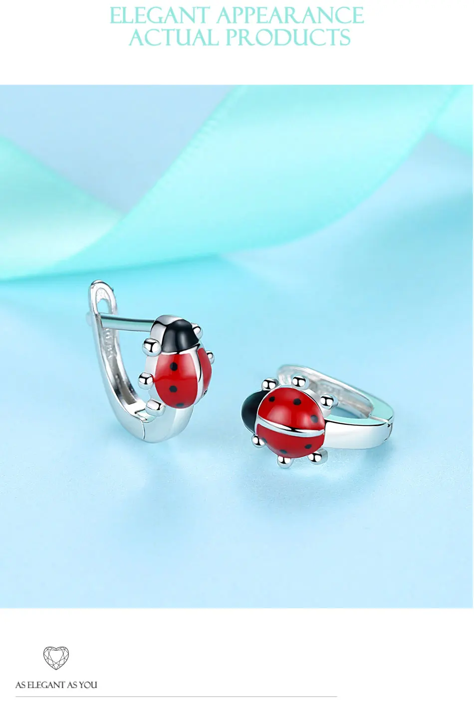 BELAWANG 2020 Рождественский подарок 925 серебро животные Божья коровка серьги для детей Красная эмаль Божья коровка серьги для женщин