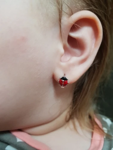 Серьги красивые, дочке очень понравились, единственное застежку немного поджала и для того, чтобы не потеряла одела маленькую силиконовую заглушку, штифт длинный, поэтому места хватает!