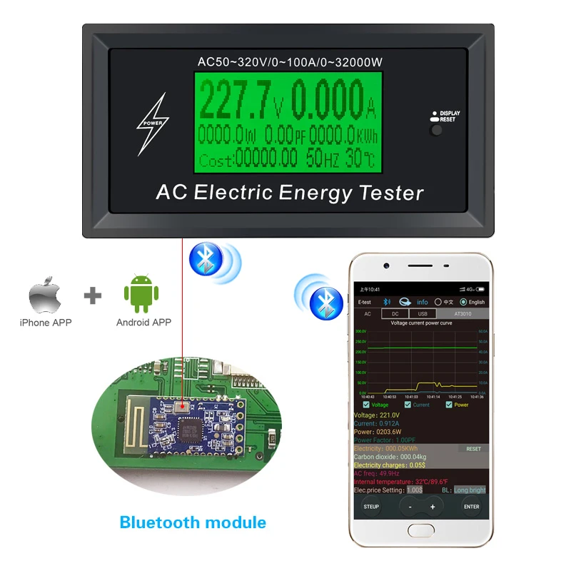 Цифровой измеритель напряжения 3 кВт, приложение для телефона, индикатор переменного тока, вольтметр, амперметр, амперметр, ваттметр, тестер, детектор