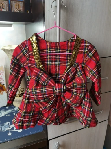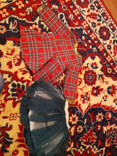 Отличного качества комплек за такие деньги! Смотрится необычно. Выполнено аккуратно, правда, местами торчат ниточки, но это не критично. Соответствует размеру. Сзади не ногой большой разрез по спинке, но булавочке решает это. Однозначно рекомендую данного продавца и товар.