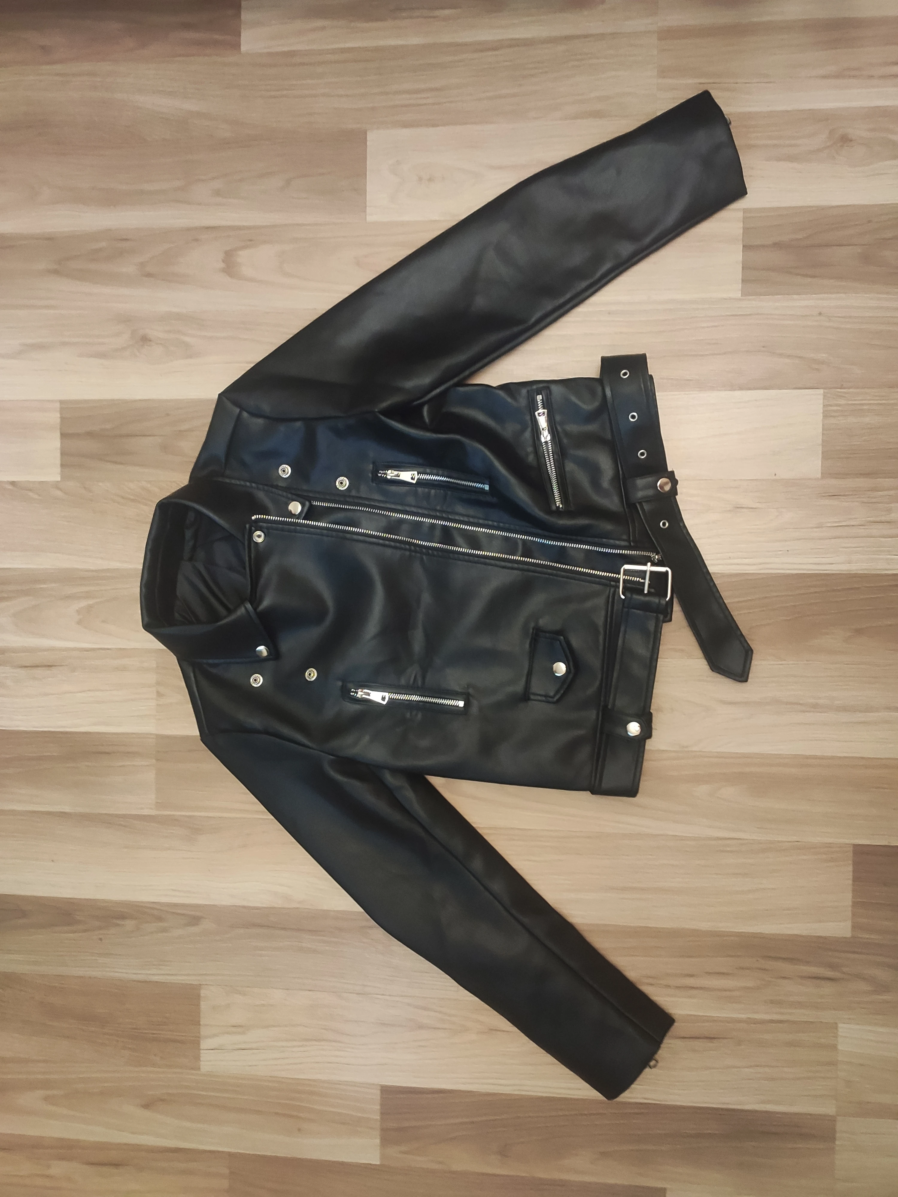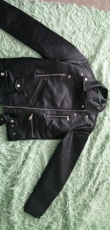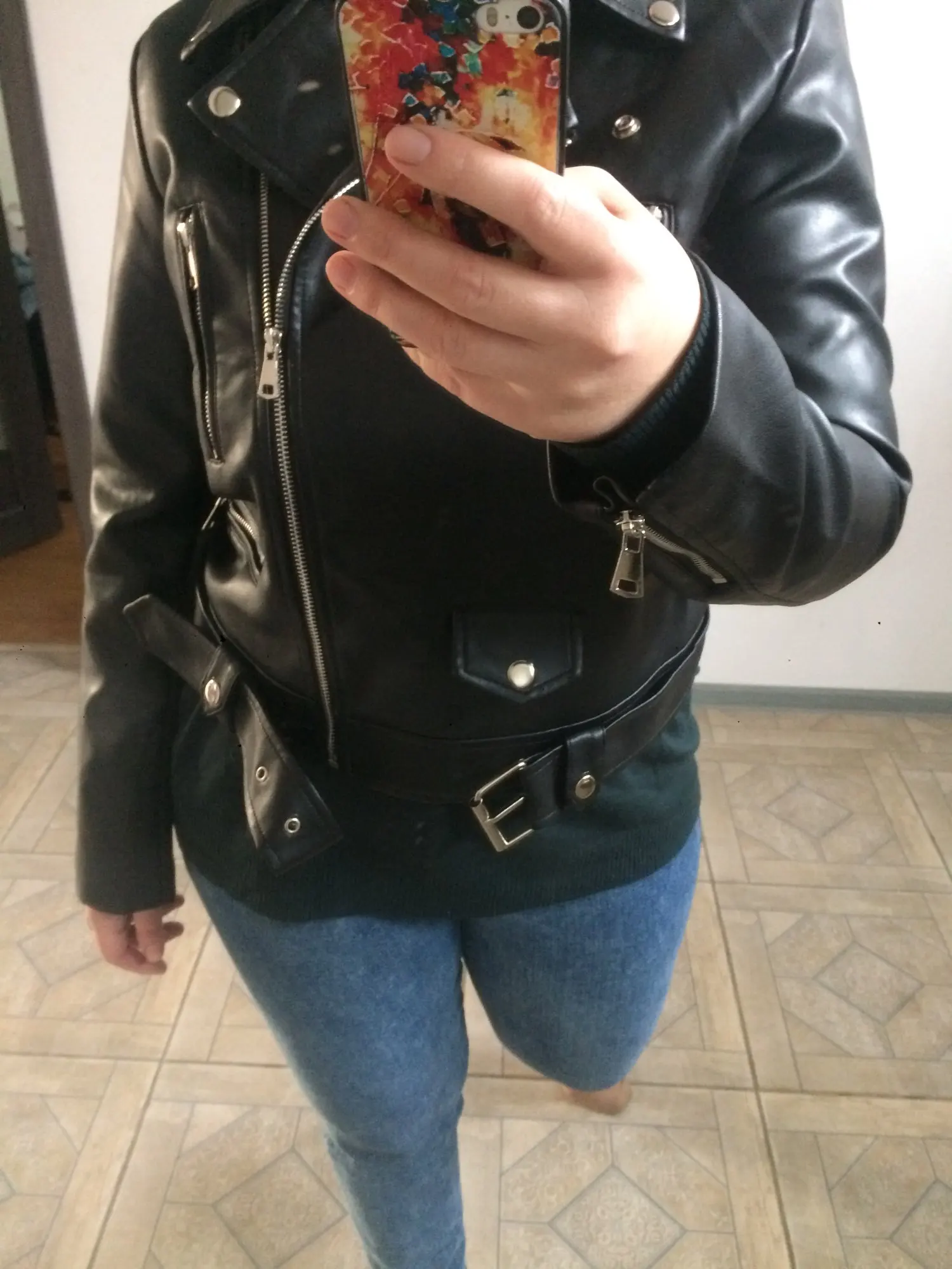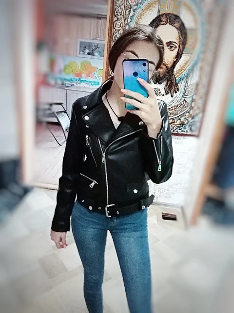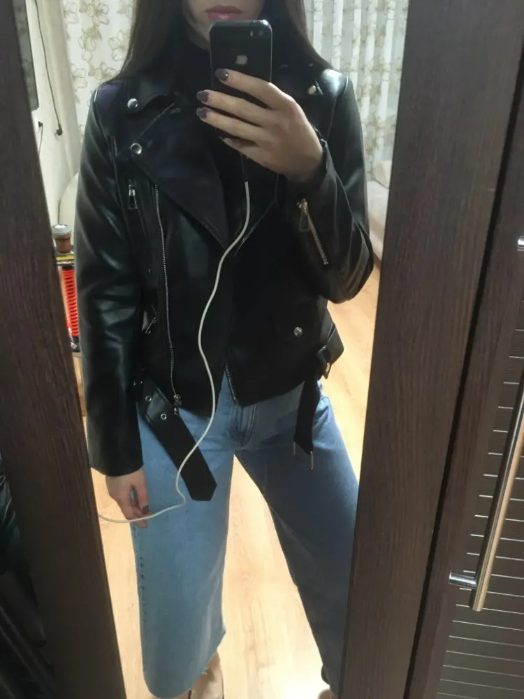 кожанка хорошая но воняет) брала размер L мой размер S село как влитое доставка быстрая