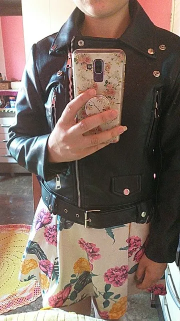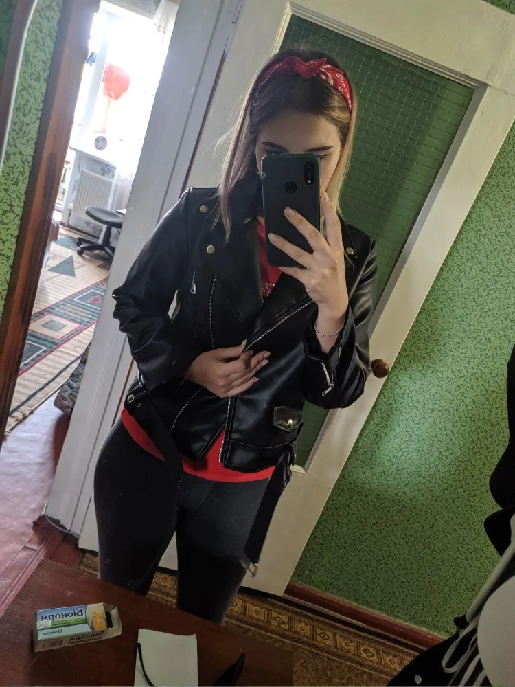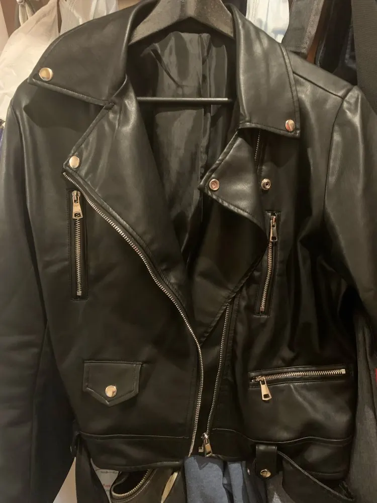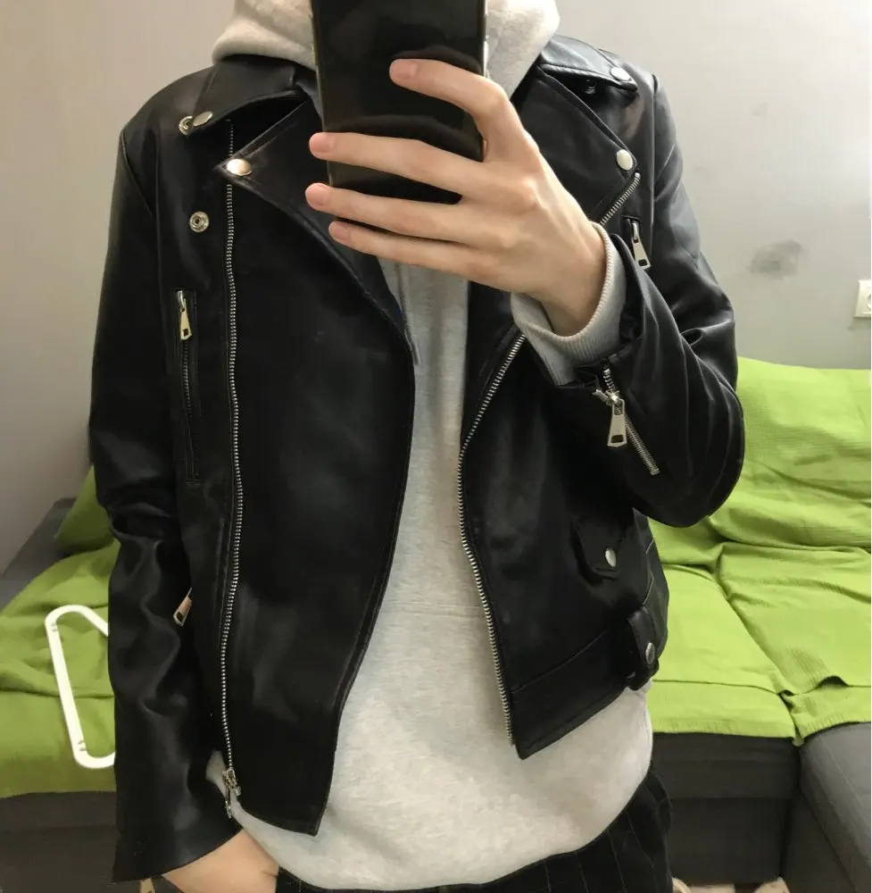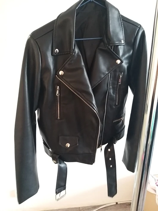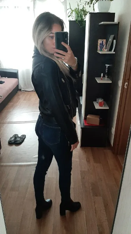 кожанка хорошая но воняет) брала размер L мой размер S село как влитое доставка быстрая
