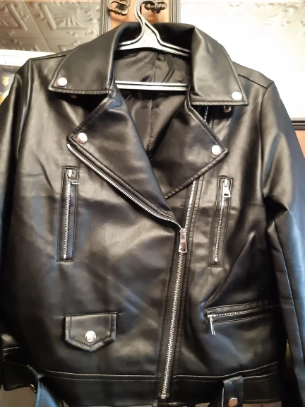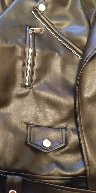 куртка отличного качества фото соответствуют кожзам очень мягкий приятный фурнитура хорошая металлическая размер соответствуют стеке продавца шла около месяца хотелось бы на см5 длиннее, а так все отлично в магазине у нас такая 40$ стоит