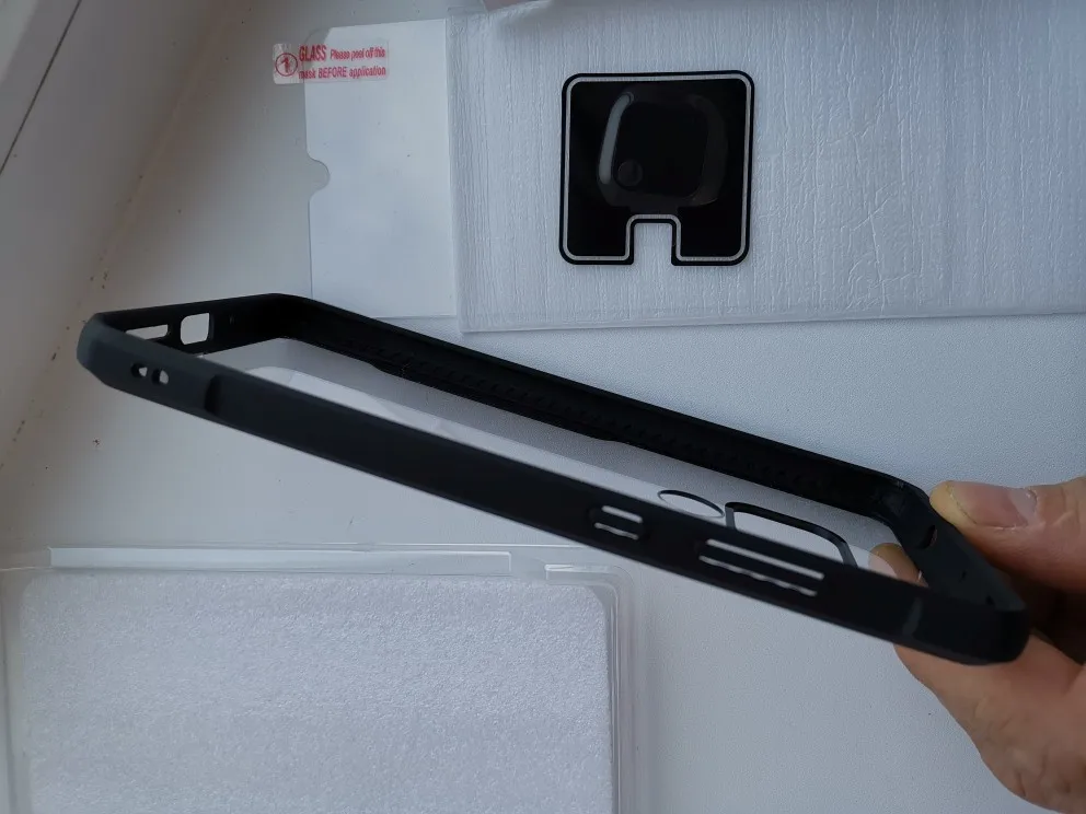 Хороший чехол покрывает все области на стороне телефона все функции работают, когда экран протектор установлен