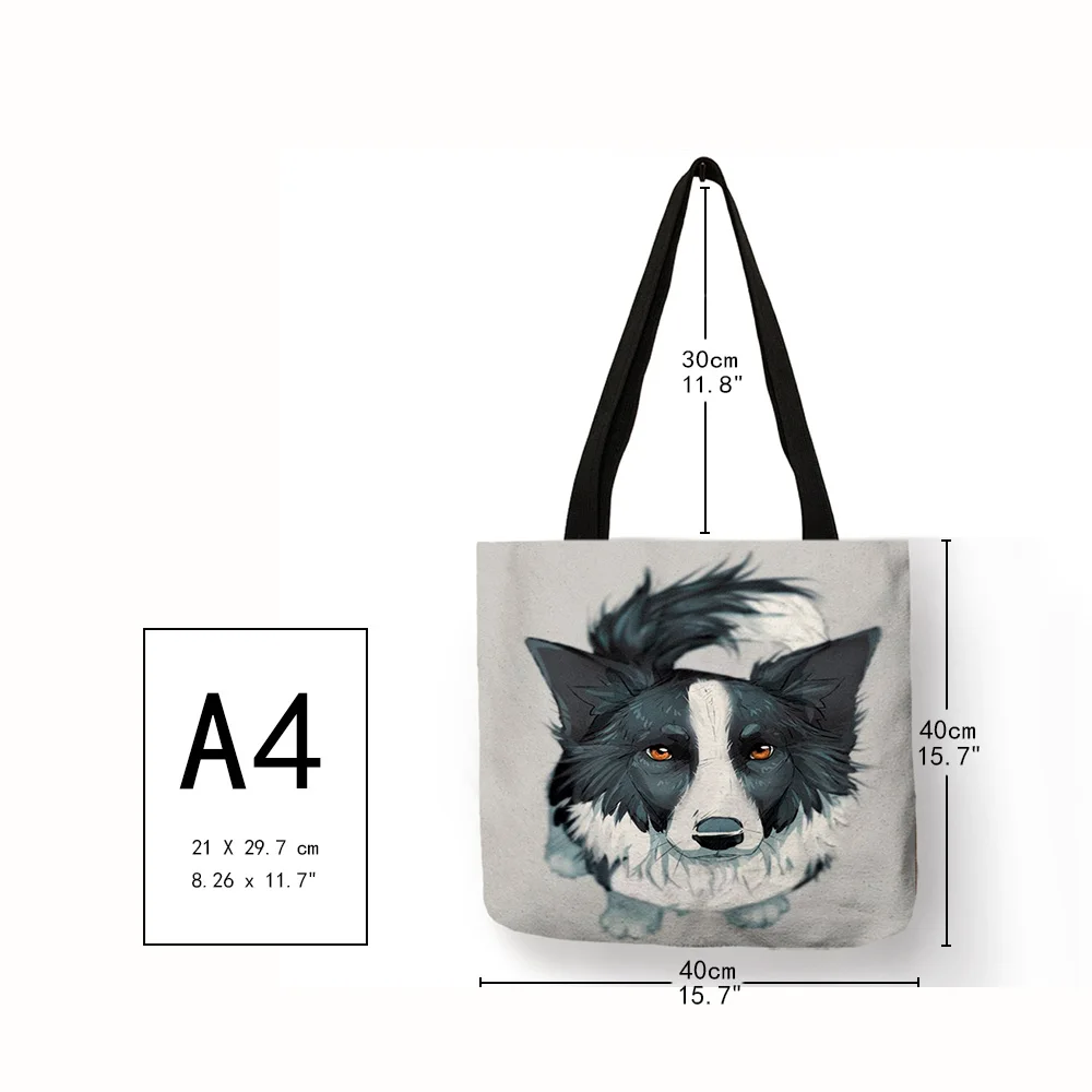 Популярная Акварельная Сумка-тоут с принтом Колли собаки для женщин, милые сумки на плечо, большая вместительность, многоразовые сумки для подгузников для покупок
