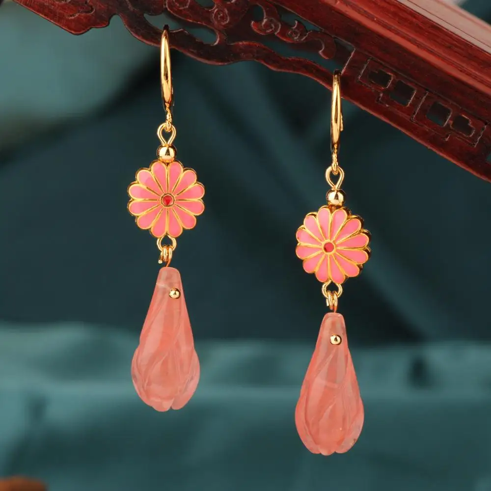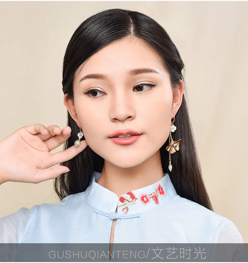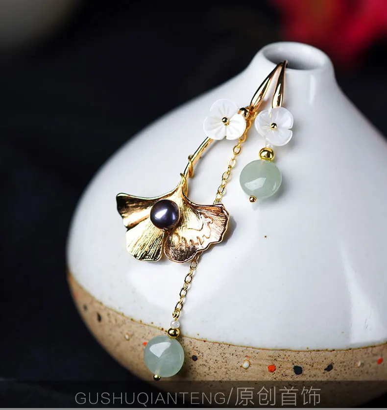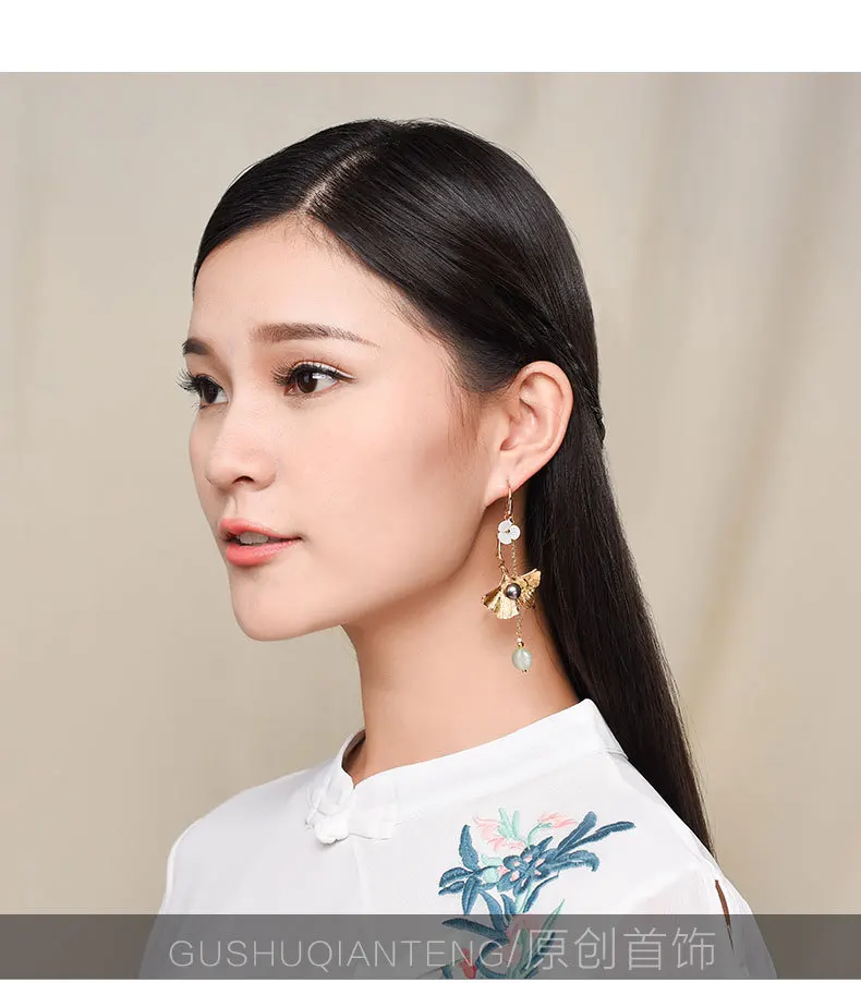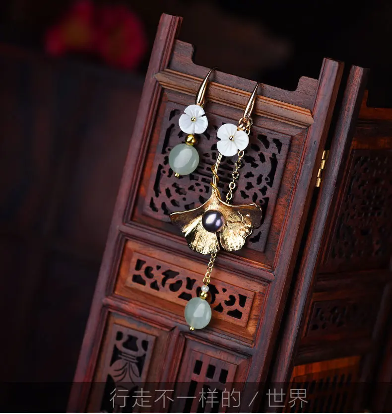 Женские длинные серьги-подвески в этническом стиле, украшения из авантурина, Винтажные серьги с зеленым камнем и жемчугом