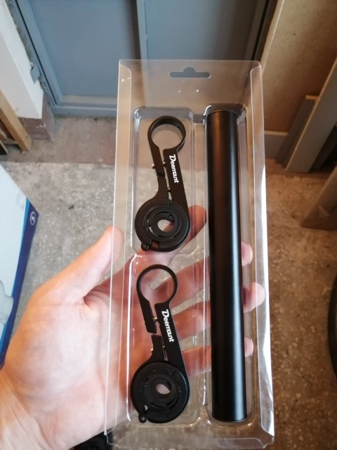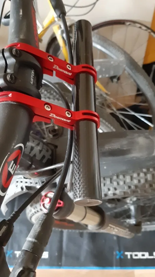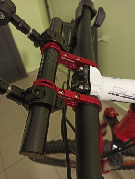 Хорошее качество, очень легкий, полезный, если у вас есть узкий руль и вы хотите использовать компьютер, переднюю фару и переднюю сумку на руль.