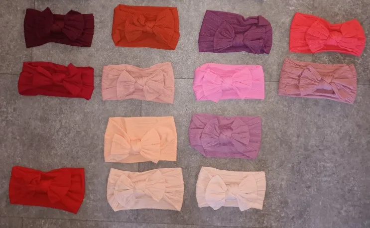Повязка на голову для новорожденных, 30 шт.лот, широкая нейлоновая повязка на голову ручной работы, ребристая повязка на голову с завязанным бантом, аксессуары для волос для девочек