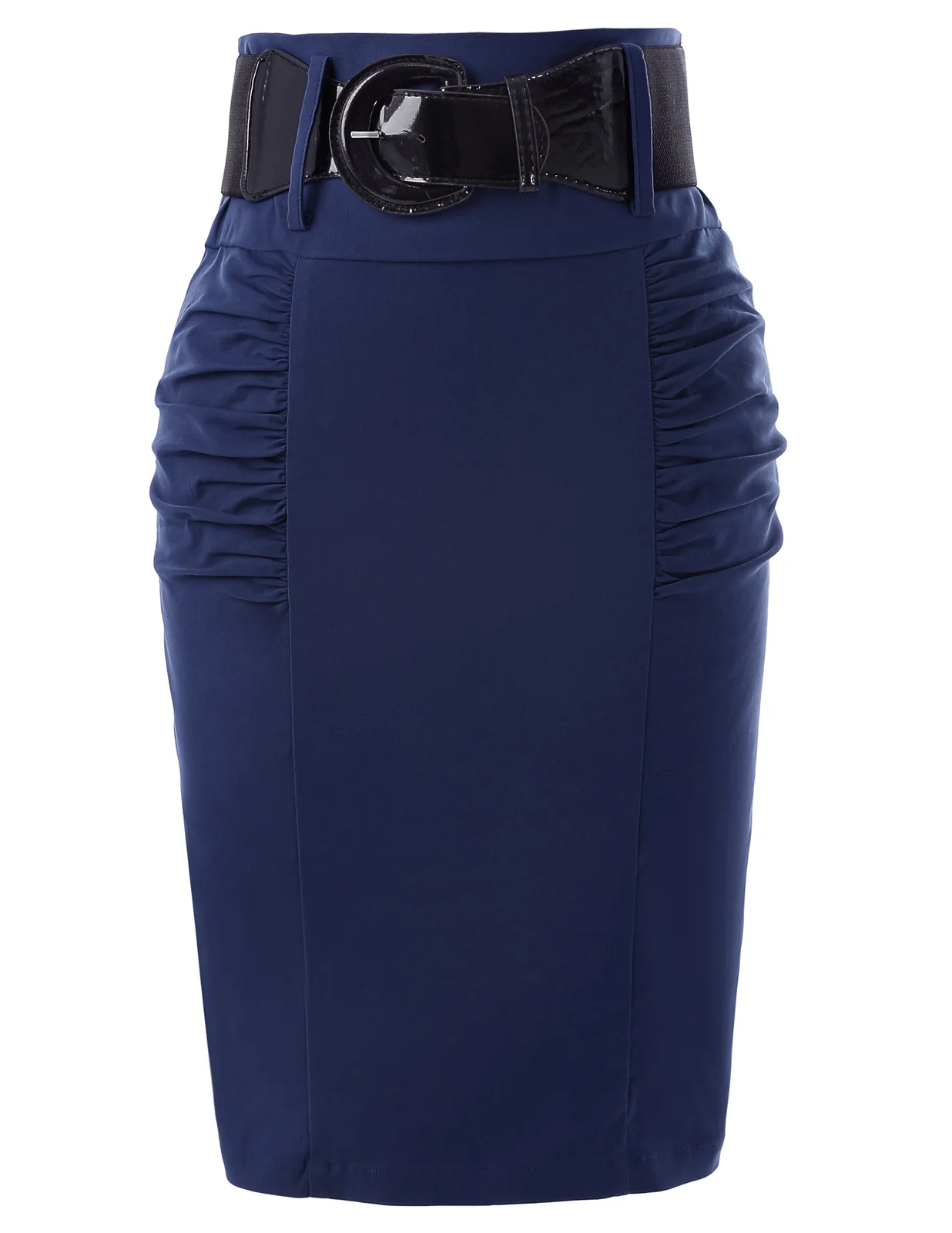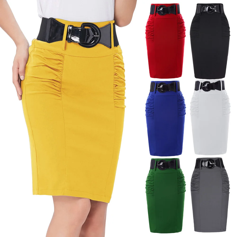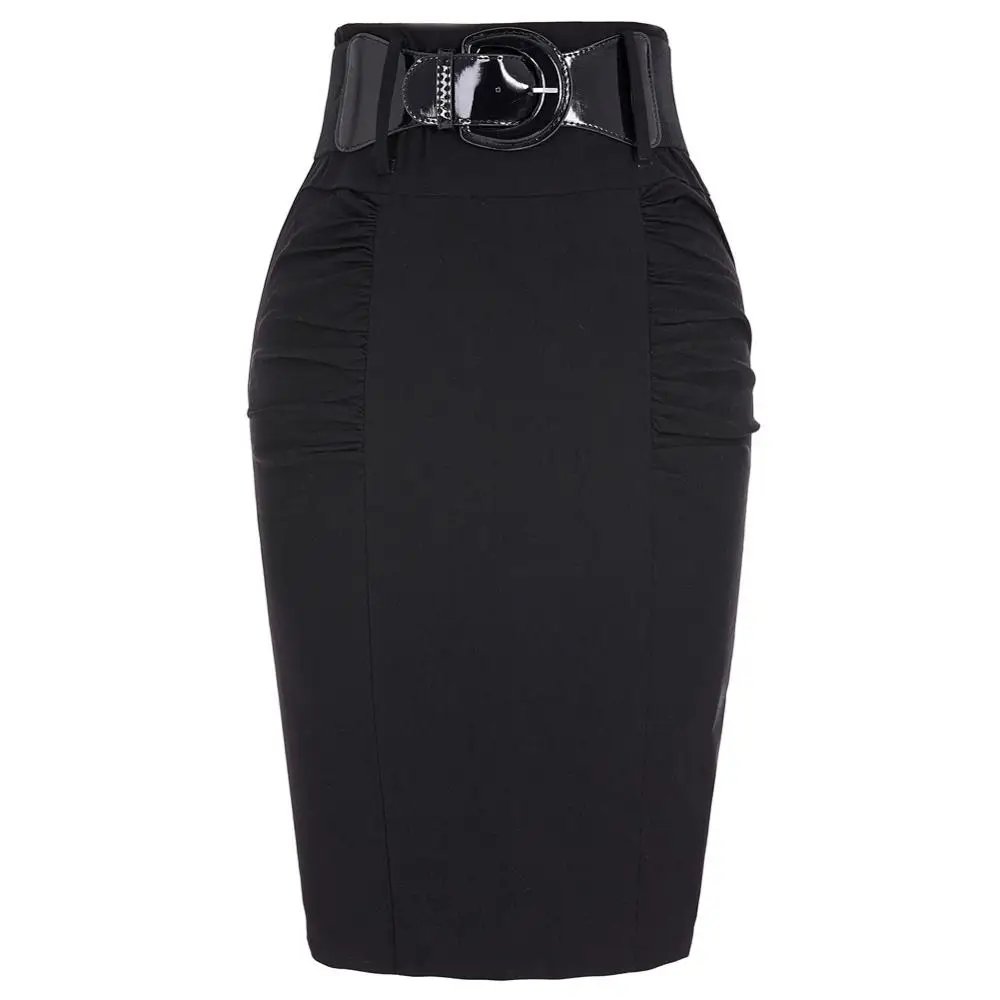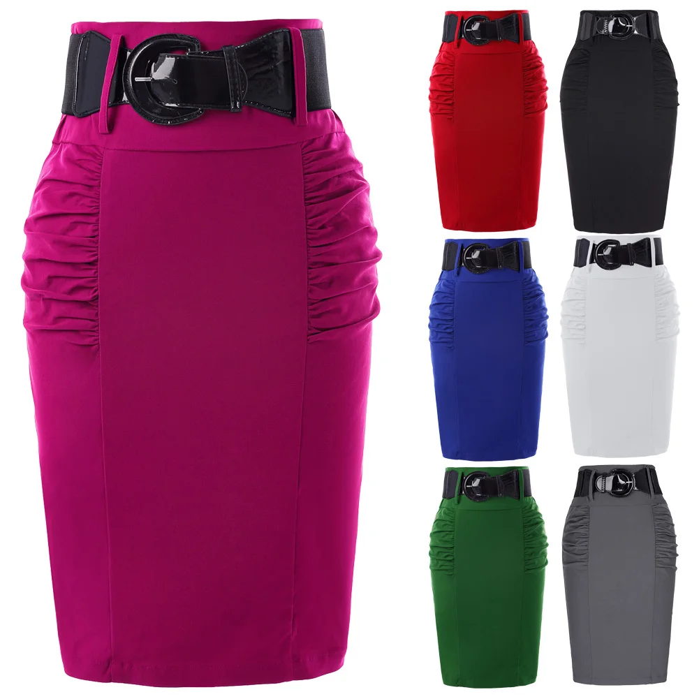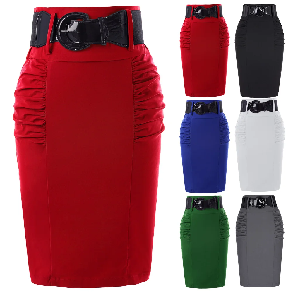 Юбка женская плиссированная с поясом, Офисная пикантная юбка-карандаш стретч с высокой талией и поясом