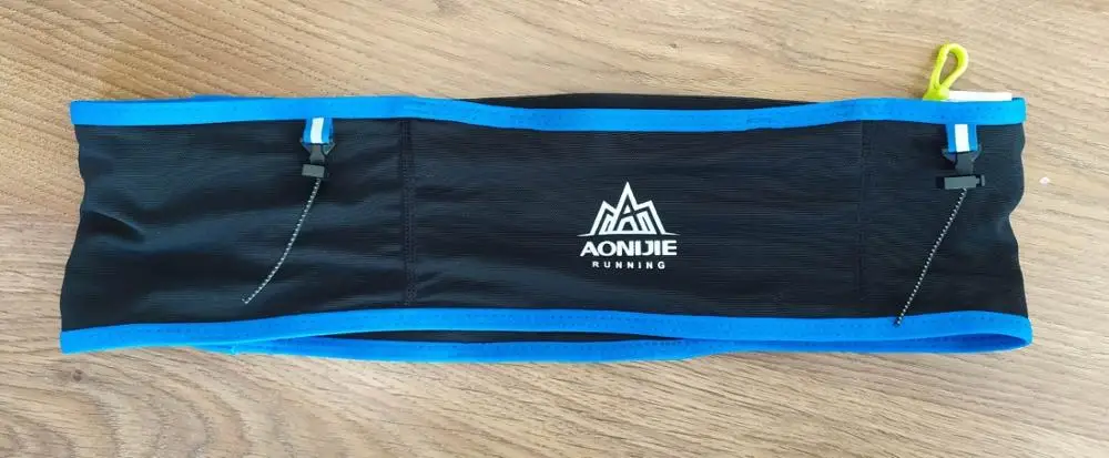 Отличный беговой ремень. Весь обхват разделен на четыре кармана, в одном есть крючок для ключей. Нагрудник с номером спереди, столбы/петли для куртки покрыты противоскользящей резиной сзади. Мягкая фляга тоже хорошая, у меня уже есть одна. Даже большой телефон легко сидит, не отпадает. Размер L/XL подходит для меня, если вы носите брюки на талии размером 34-35 см, хотя они могут быть немного плотнее.