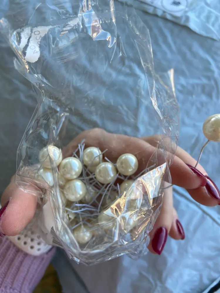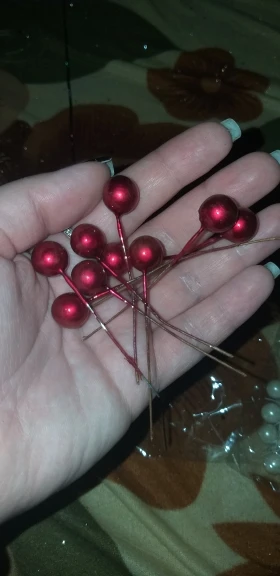 Я немного расстроена, пришло 49 шт. Одна тычинка с браком. И оттенок цвета не совсем совпадает с фото. Так что цена-качество на «4». Доставка быстрая, прокрас ягод хорошее, красивый перламутр.