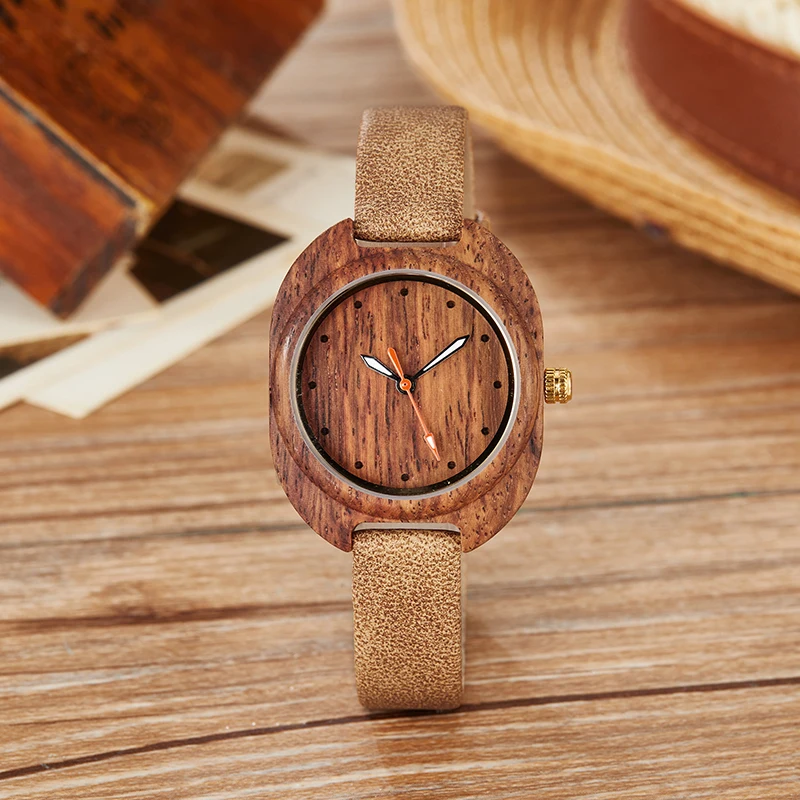 Женские деревянные часы, женские наручные часы, деревянный чехол, кожаный ремешок, Ретро Женские кварцевые наручные часы, женские часы