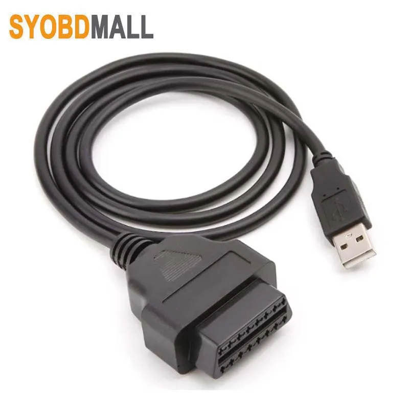 Автомобильный 16-контактный кабель OBD2, 1 м, с гнездом на USB